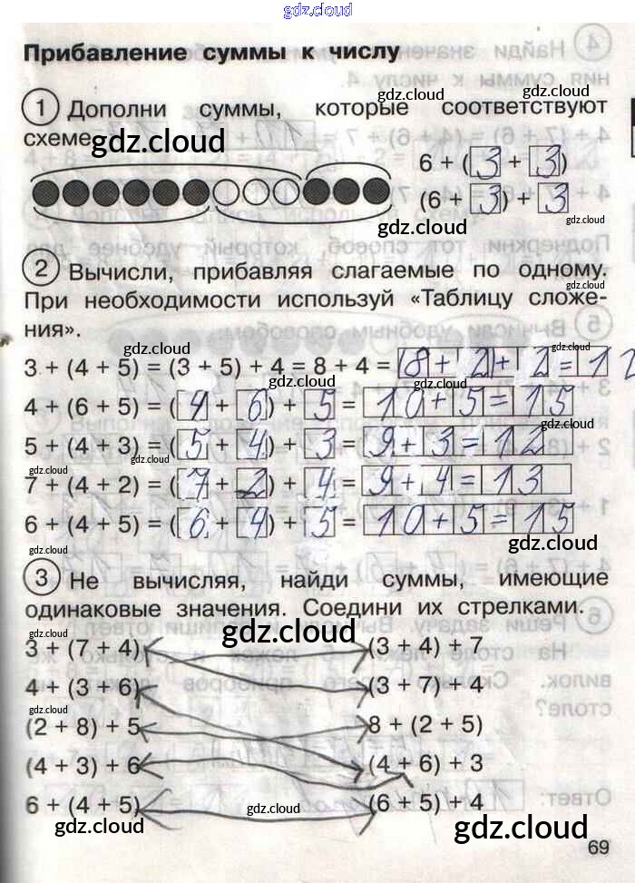 Ответ на задание 69 Тетрадь для самостоятельной работы Математика за 1 (первый) класс Захарова, Юдина Перспективная начальная школа 2016 Часть 1, 2