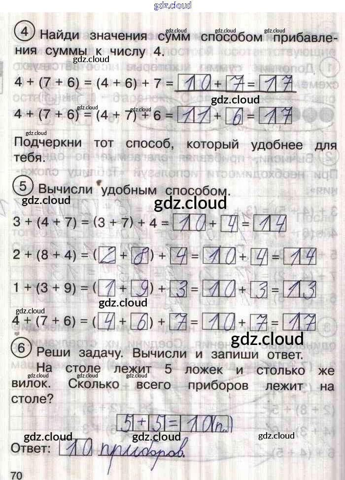 Ответ на задание 70 Тетрадь для самостоятельной работы Математика за 1 (первый) класс Захарова, Юдина Перспективная начальная школа 2016 Часть 1, 2