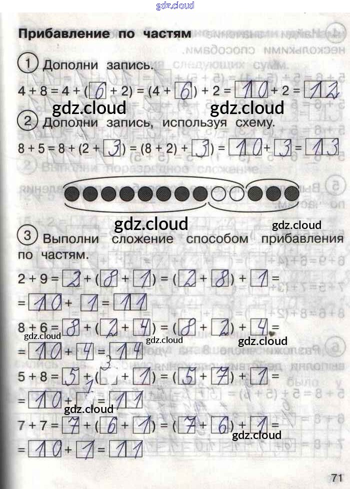 Ответ на задание 71 Тетрадь для самостоятельной работы Математика за 1 (первый) класс Захарова, Юдина Перспективная начальная школа 2016 Часть 1, 2