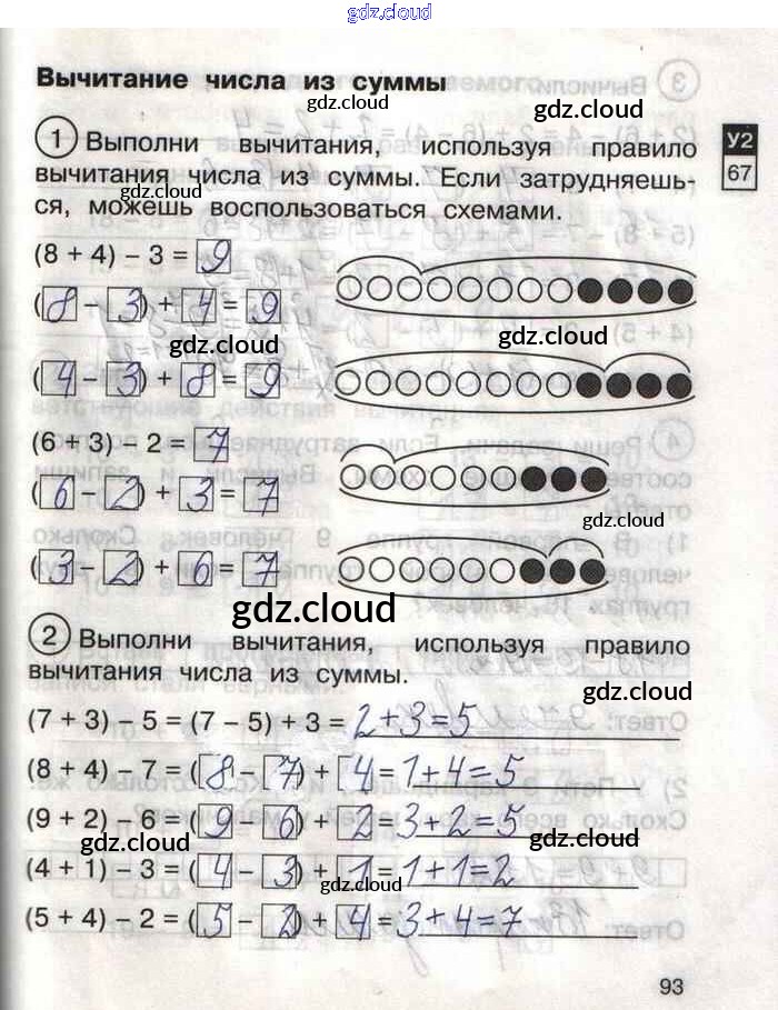 Ответ на задание 93 Тетрадь для самостоятельной работы Математика за 1 (первый) класс Захарова, Юдина Перспективная начальная школа 2016 Часть 1, 2