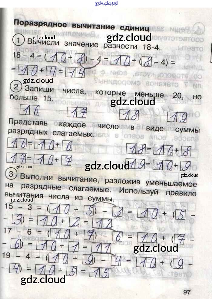 Ответ на задание 97 Тетрадь для самостоятельной работы Математика за 1 (первый) класс Захарова, Юдина Перспективная начальная школа 2016 Часть 1, 2