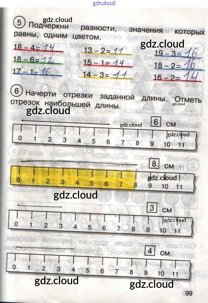 Ответ на задание 99 Тетрадь для самостоятельной работы Математика за 1 (первый) класс Захарова, Юдина Перспективная начальная школа 2016 Часть 1, 2