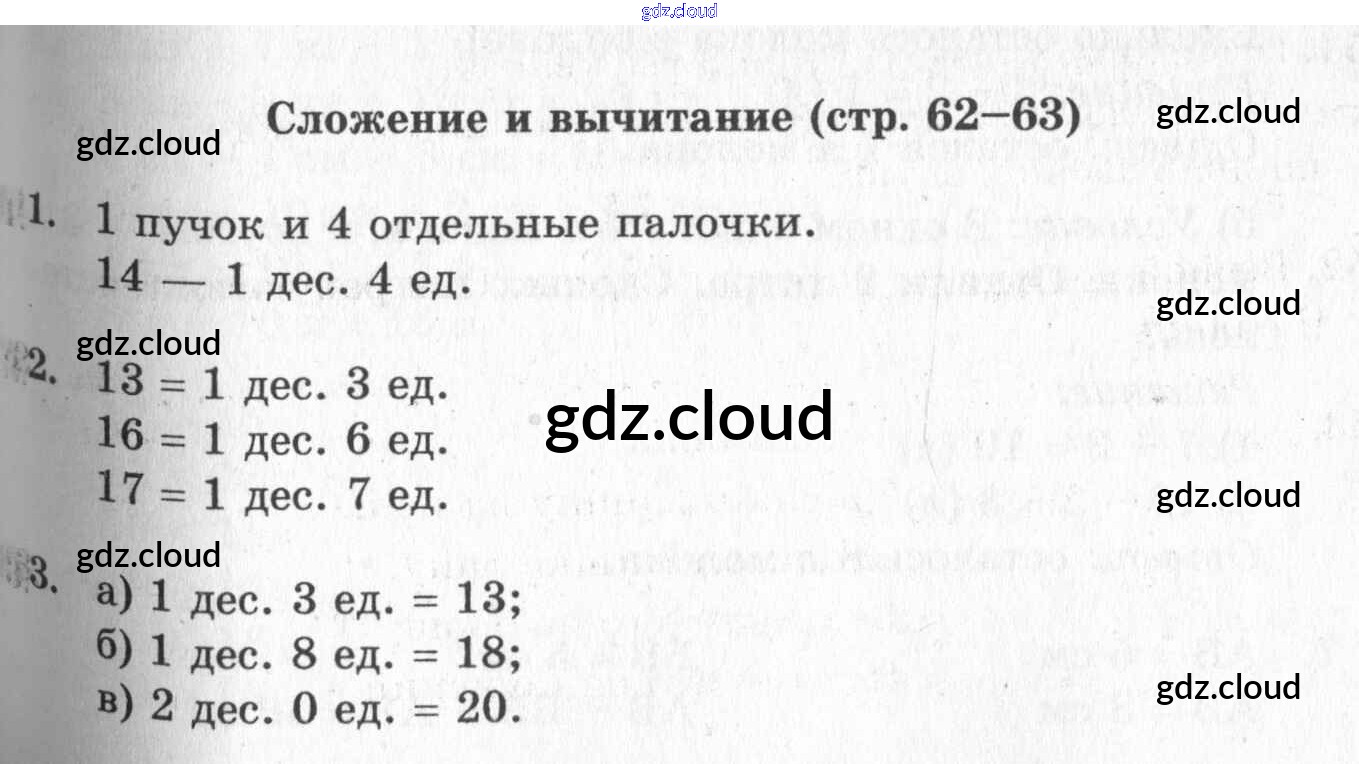 Ответ на задание 62 Учебник Математика за 1 (первый) класс Дорофеев, Миракова, Бука Перспектива 2015 Часть 1, 2