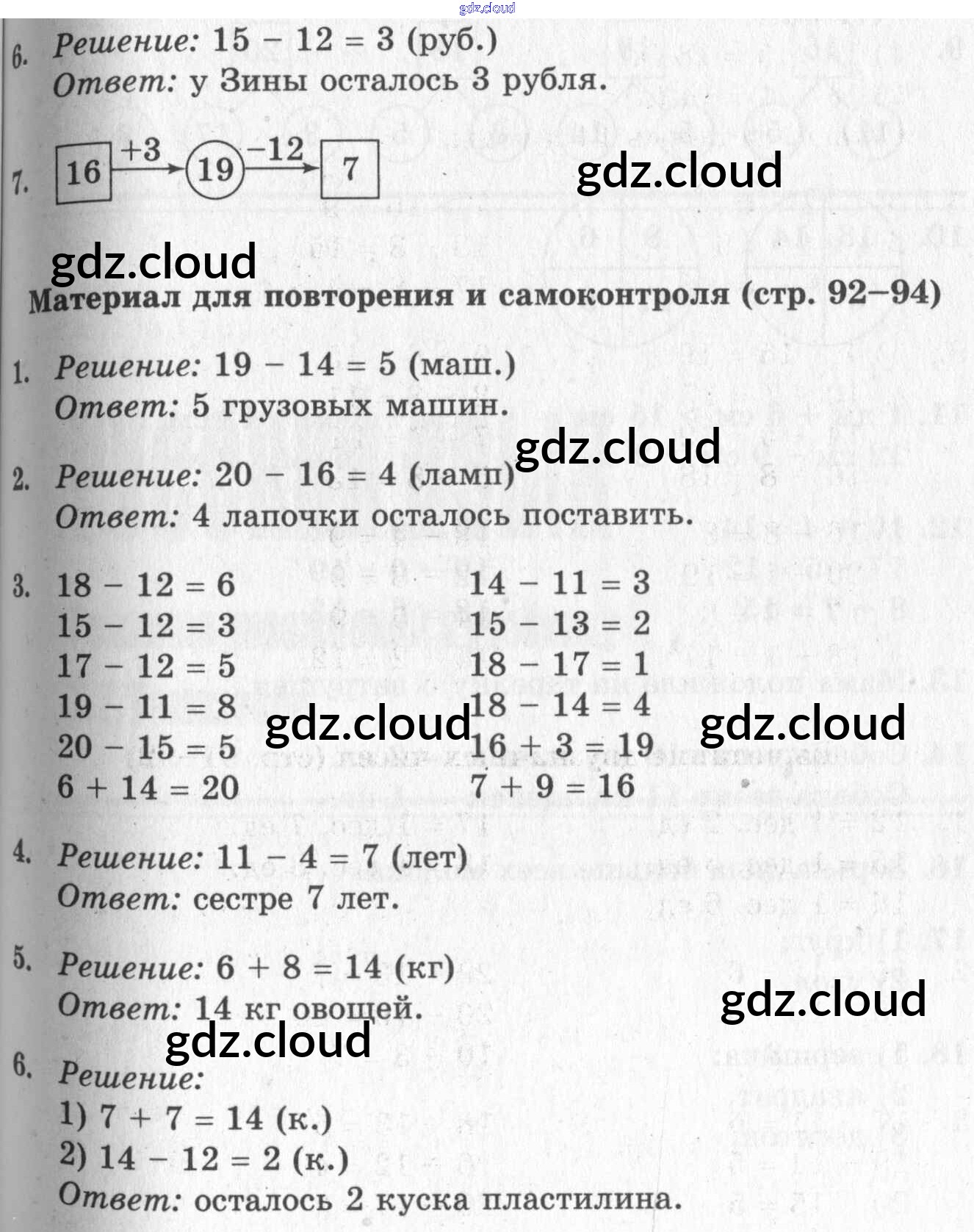 Ответ на задание 92 Учебник Математика за 1 (первый) класс Дорофеев, Миракова, Бука Перспектива 2015 Часть 1, 2
