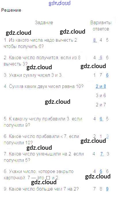 Ответы к части 1 по Математике 1 класс Учебник Моро Школа России Часть 1, 2 Просвещение