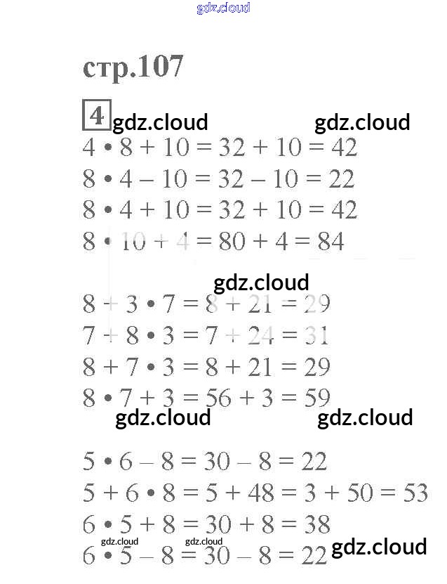 Страница 107 Действия с выражениями по Математике 2 класс Учебник Башмаков Планета знаний Часть 1, 2 Аст/Астрель
