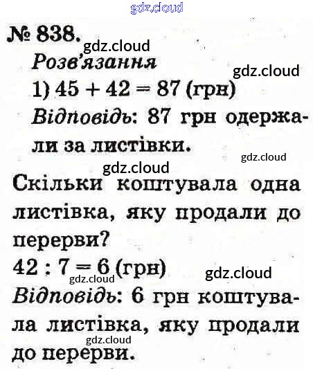 Ответ на задание 838 Учебник Математика за 2 (второй) класс Богданович, Лишенко 2012