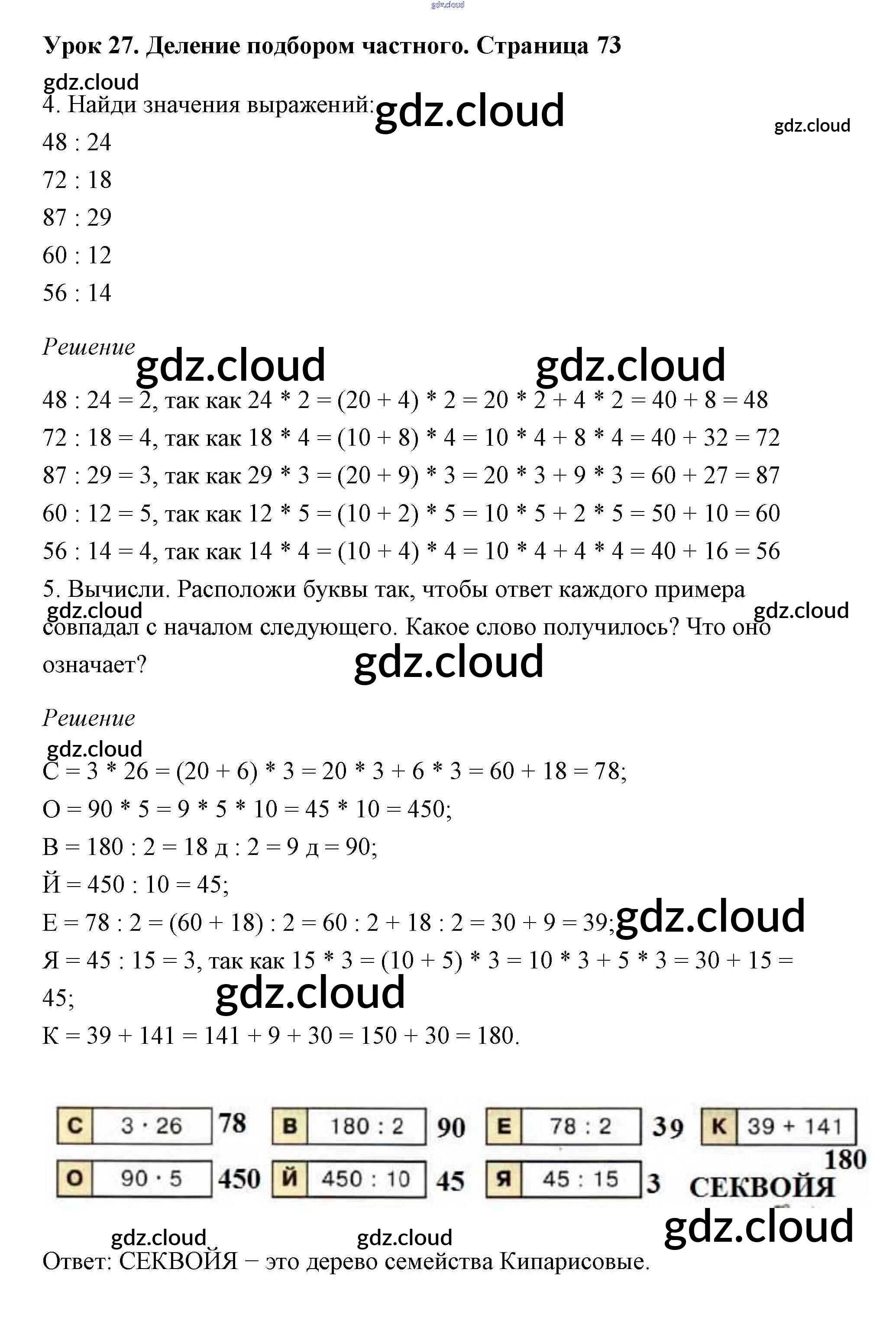 Ответ на задание 73 Учебник Математика за 2 (второй) класс Петерсон Перспектива 2016 Часть 2, 3