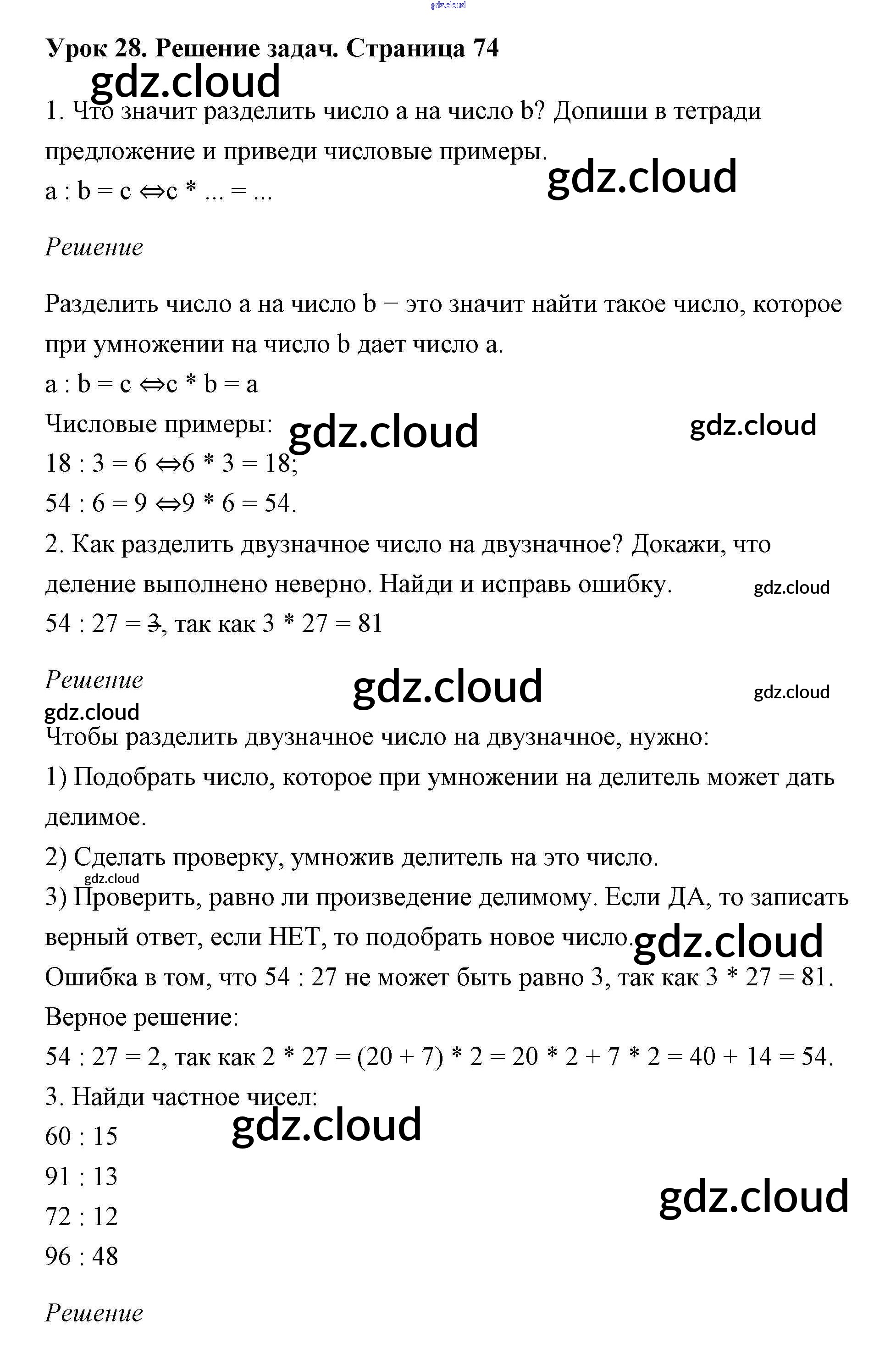 Ответ на задание 74 Учебник Математика за 2 (второй) класс Петерсон Перспектива 2016 Часть 2, 3