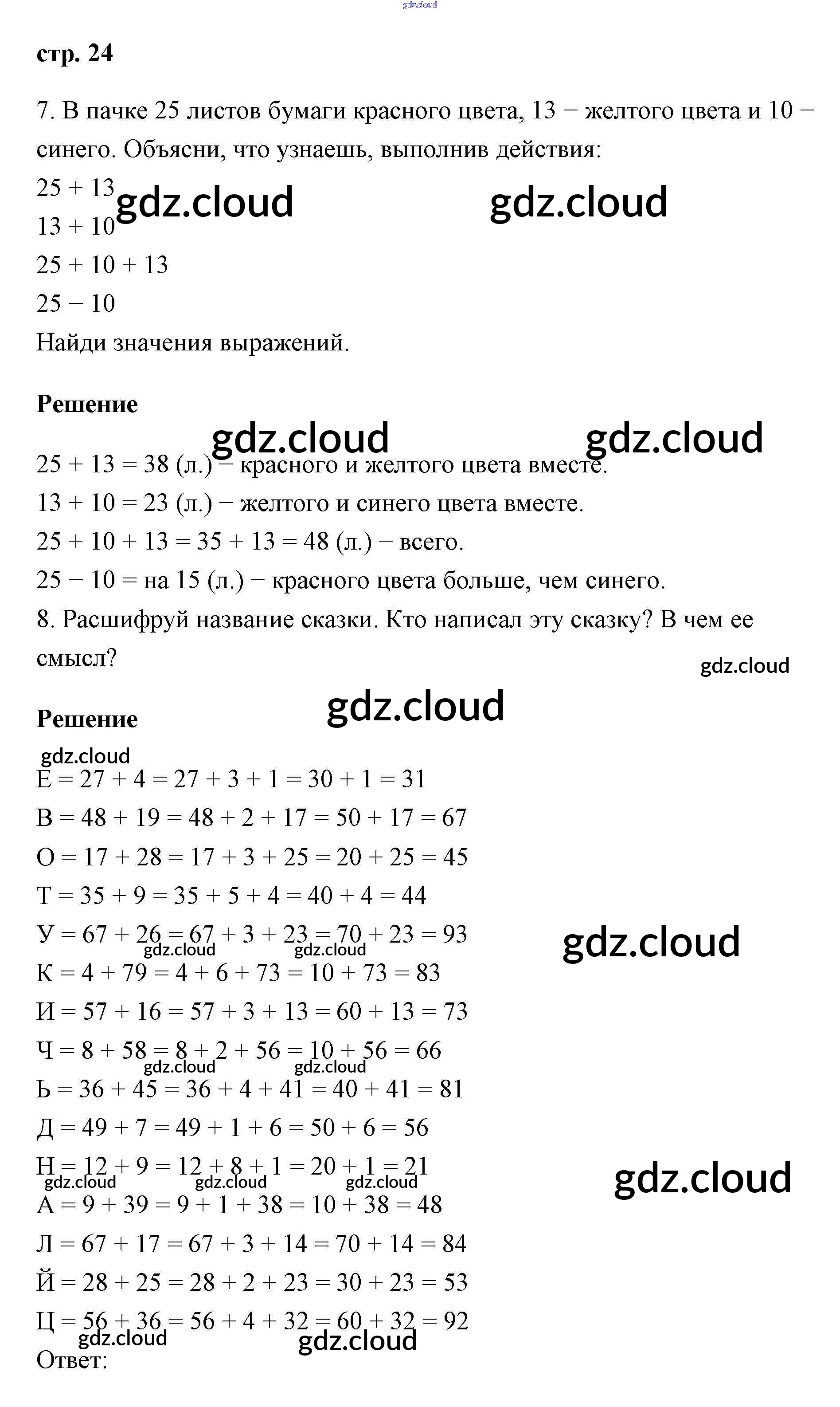 Ответ на задание 24 Учебник Математика за 2 (второй) класс Петерсон Учусь учиться 2016 Часть 1, 3