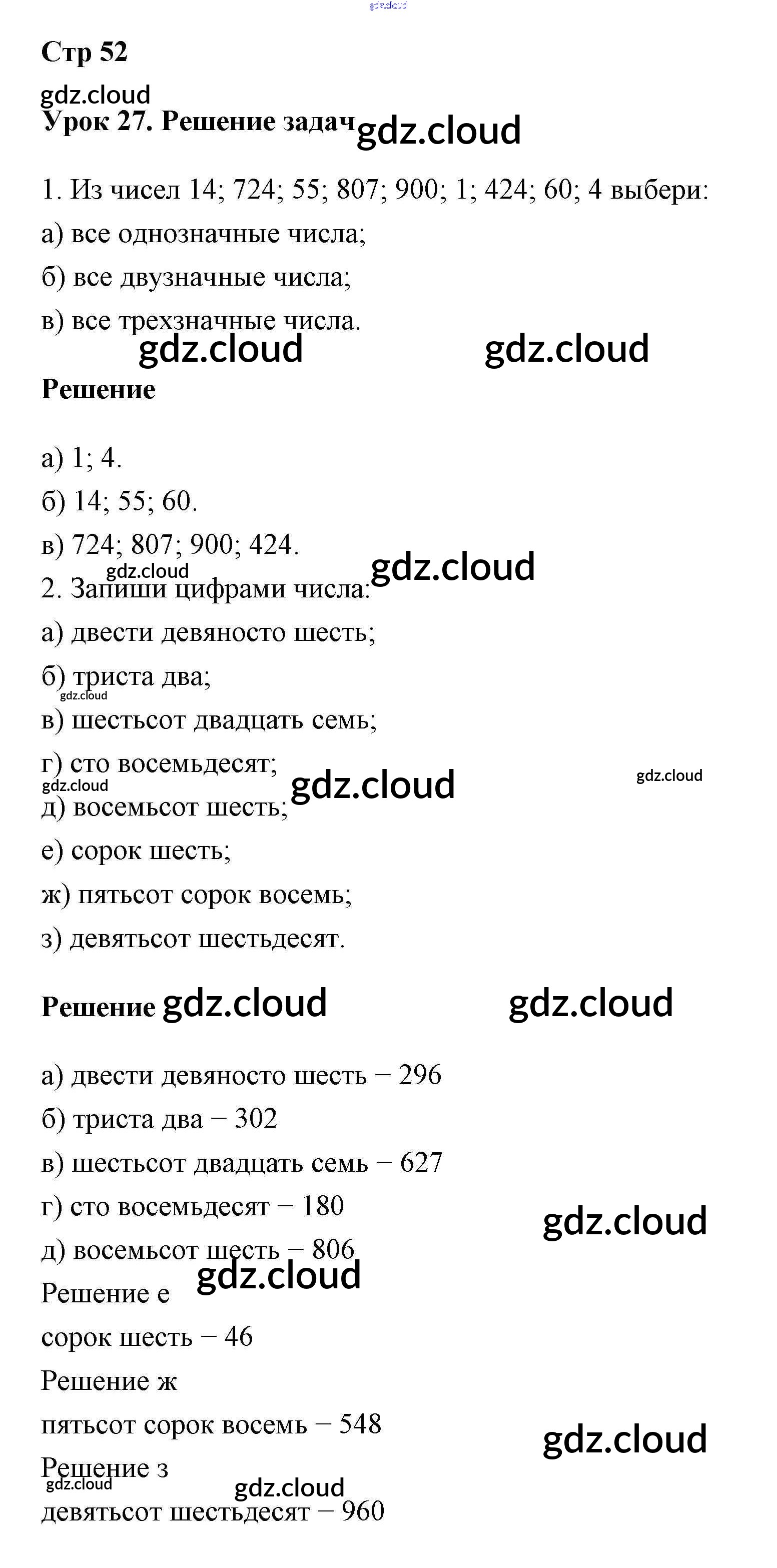 Ответ на задание 52 Учебник Математика за 2 (второй) класс Петерсон Учусь учиться 2016 Часть 1, 3