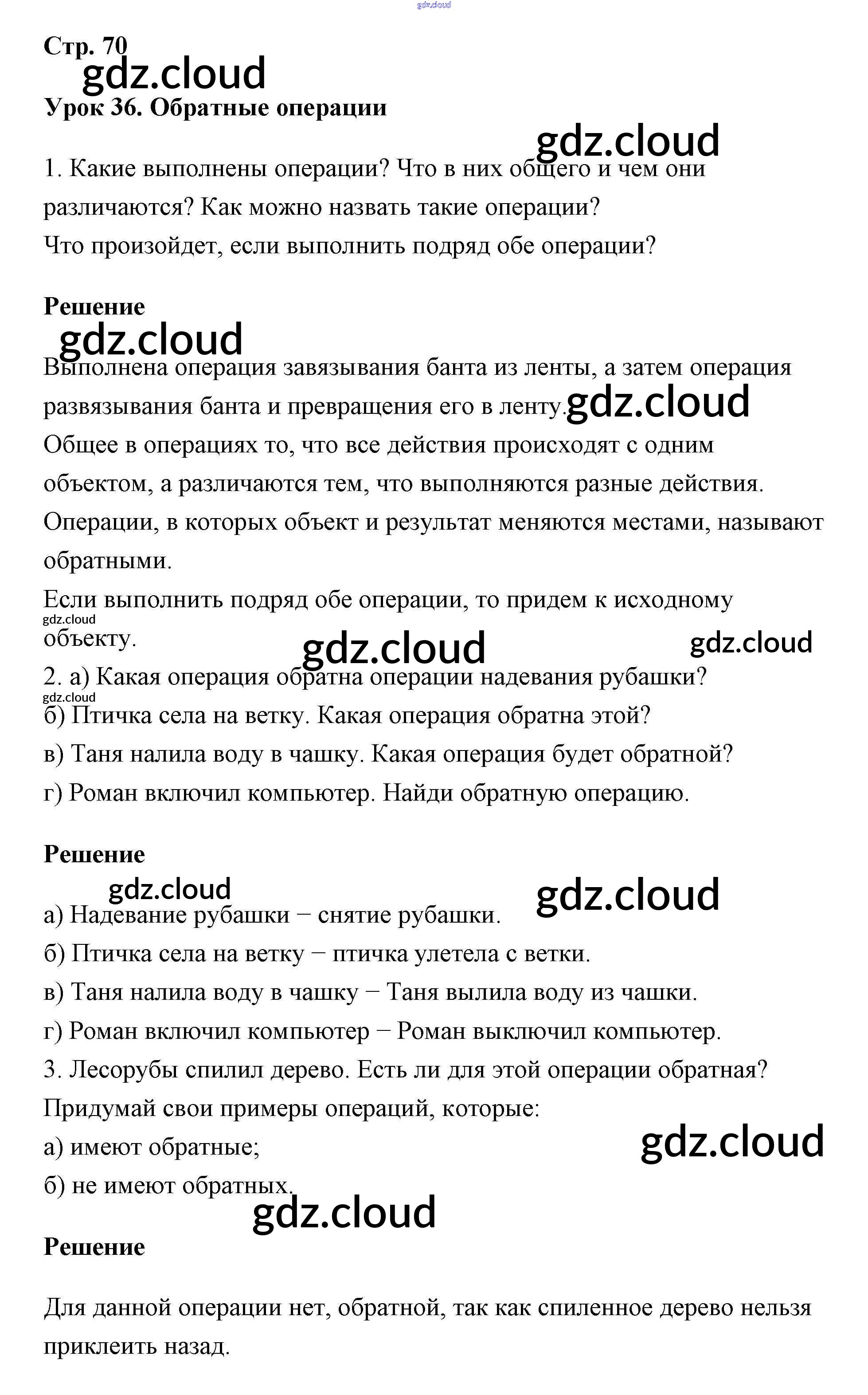 Ответ на задание 70 Учебник Математика за 2 (второй) класс Петерсон Учусь учиться 2016 Часть 1, 3