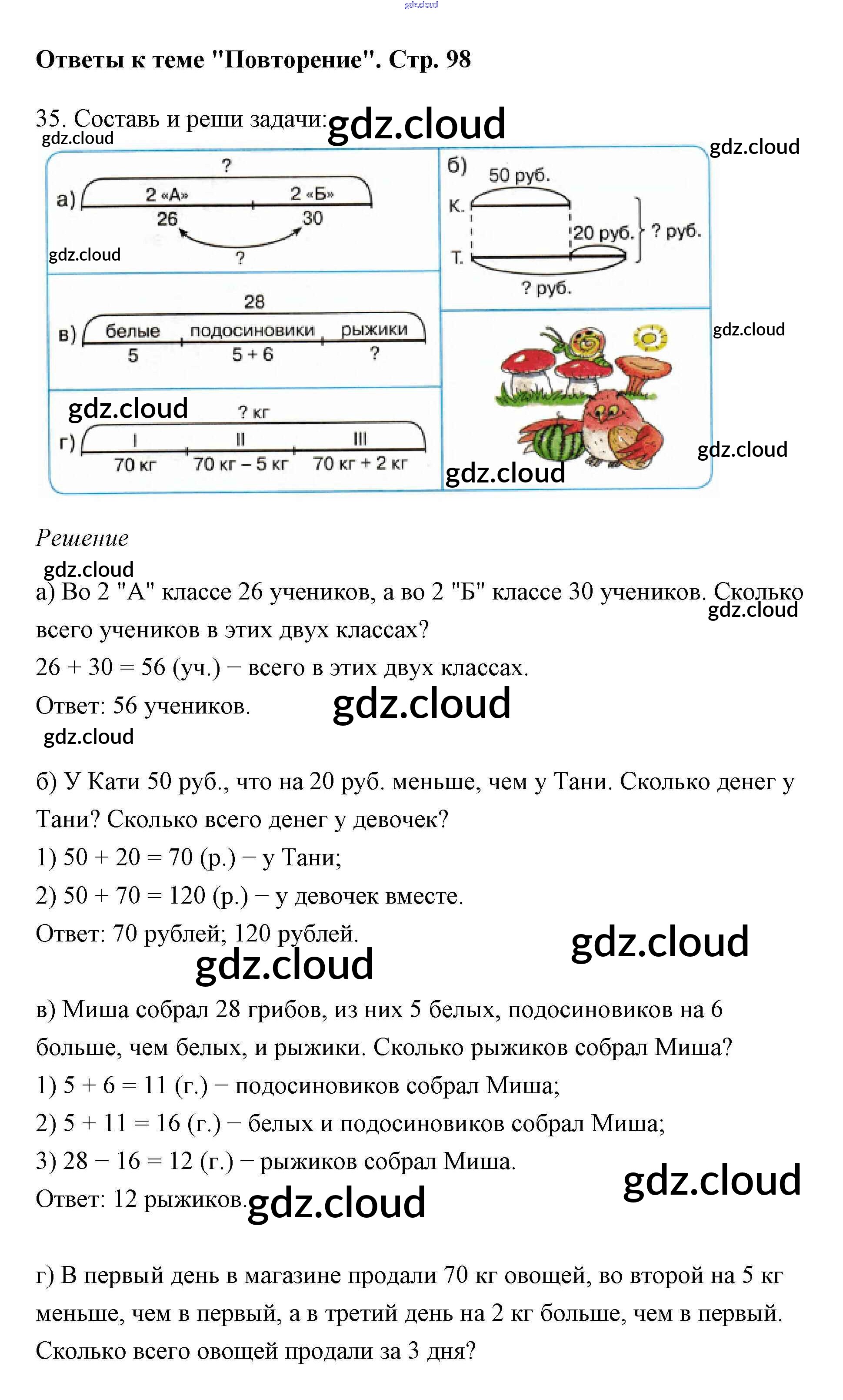 Ответ на задание 98 Учебник Математика за 2 (второй) класс Петерсон Учусь учиться 2016 Часть 1, 3