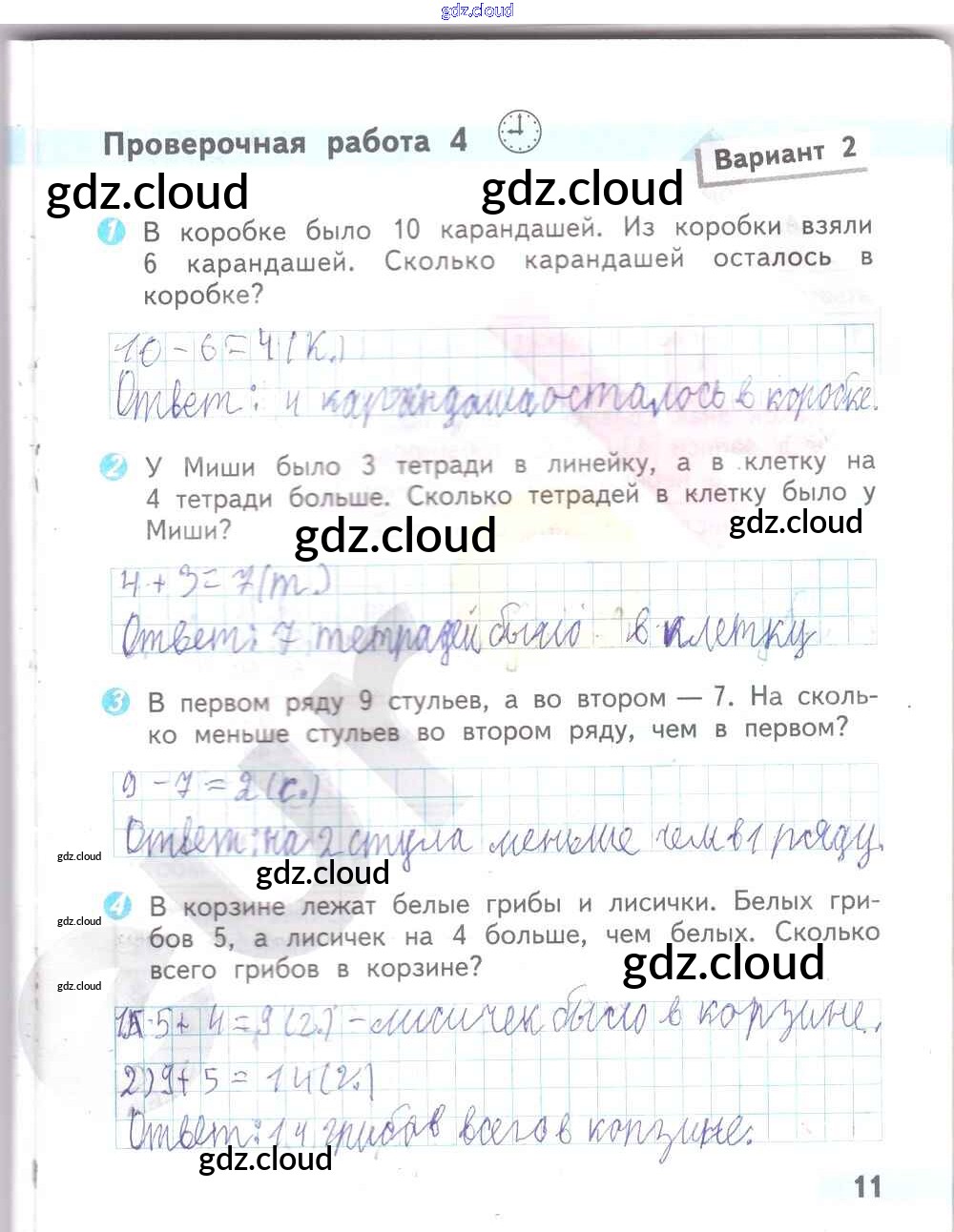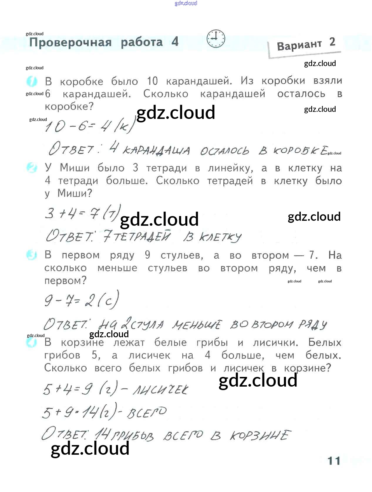 Ответ на задание 11 Проверочные работы Математика за 2 (второй) класс Волкова Школа России 2014