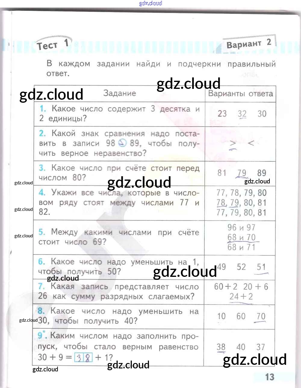 Ответ на задание 13 Проверочные работы Математика за 2 (второй) класс Волкова Школа России 2014