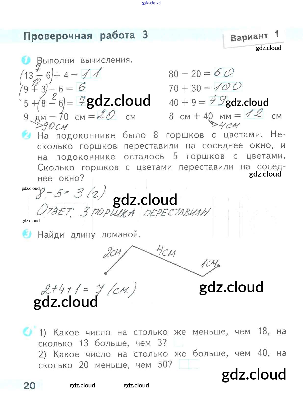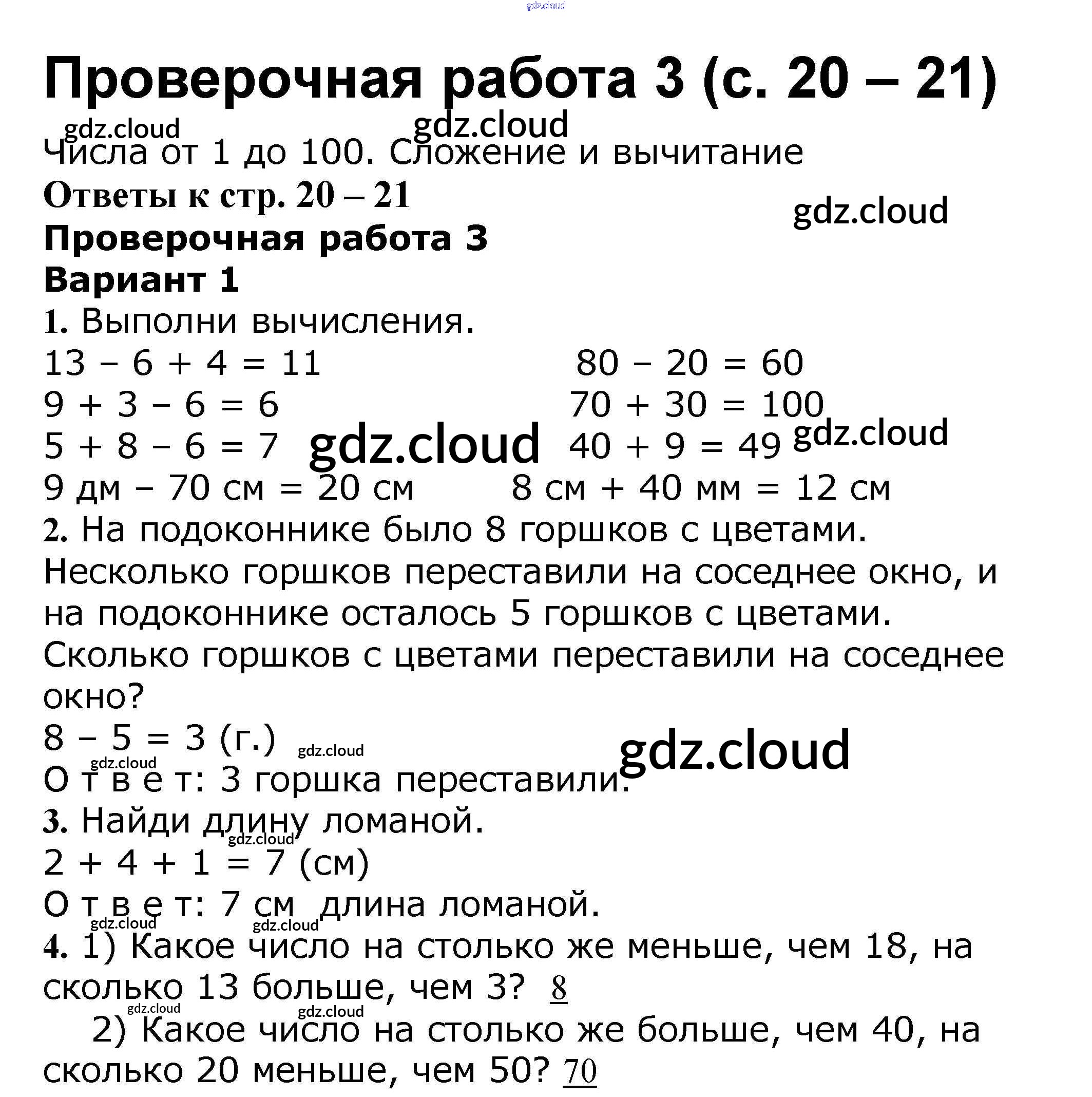 Ответ на задание 20 Проверочные работы Математика за 2 (второй) класс Волкова Школа России 2014