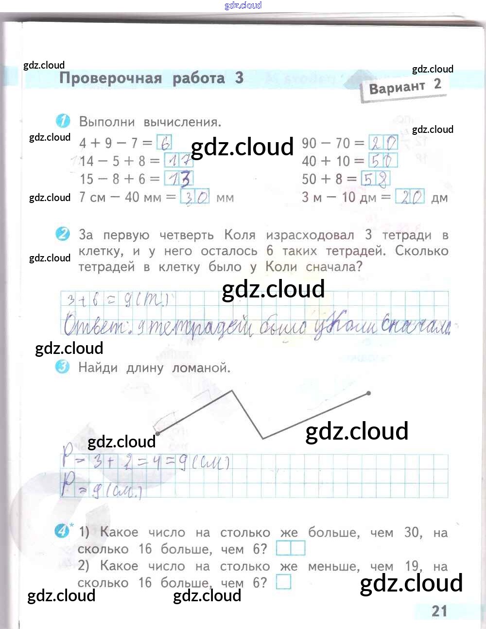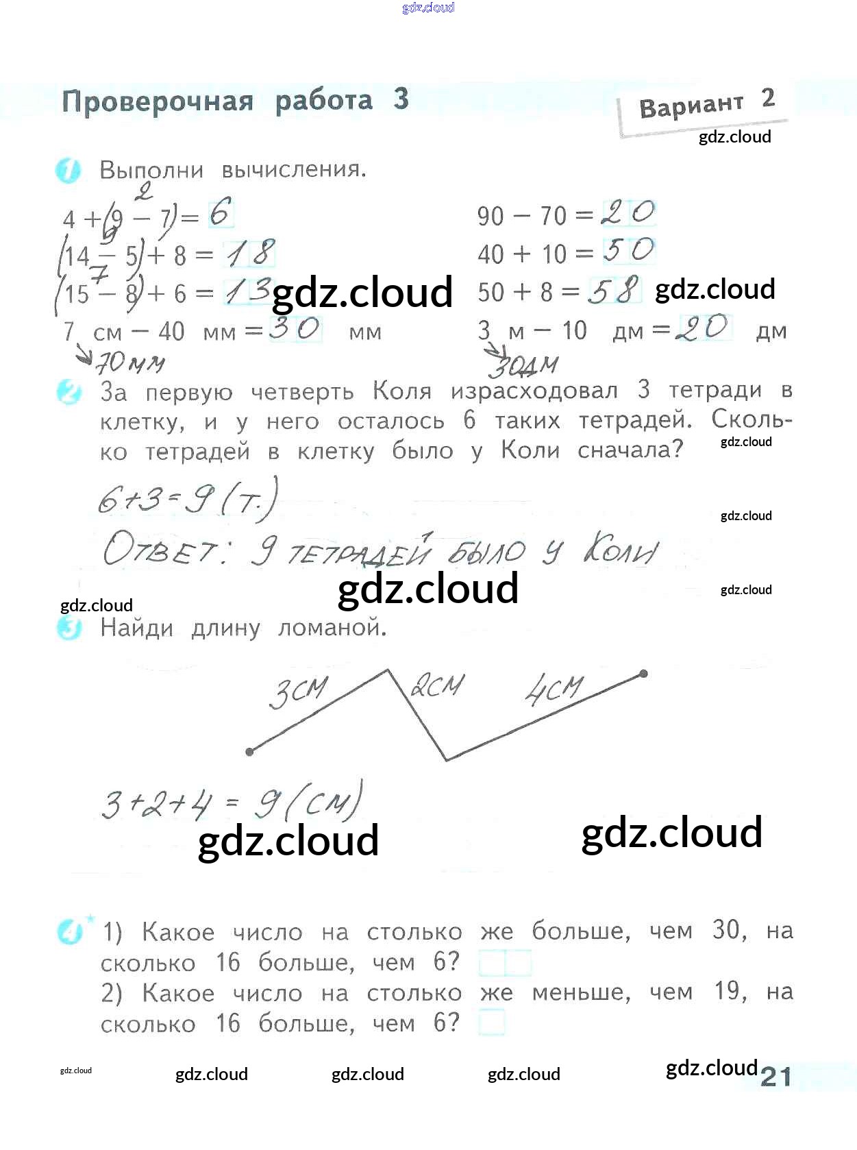 Ответ на задание 21 Проверочные работы Математика за 2 (второй) класс Волкова Школа России 2014