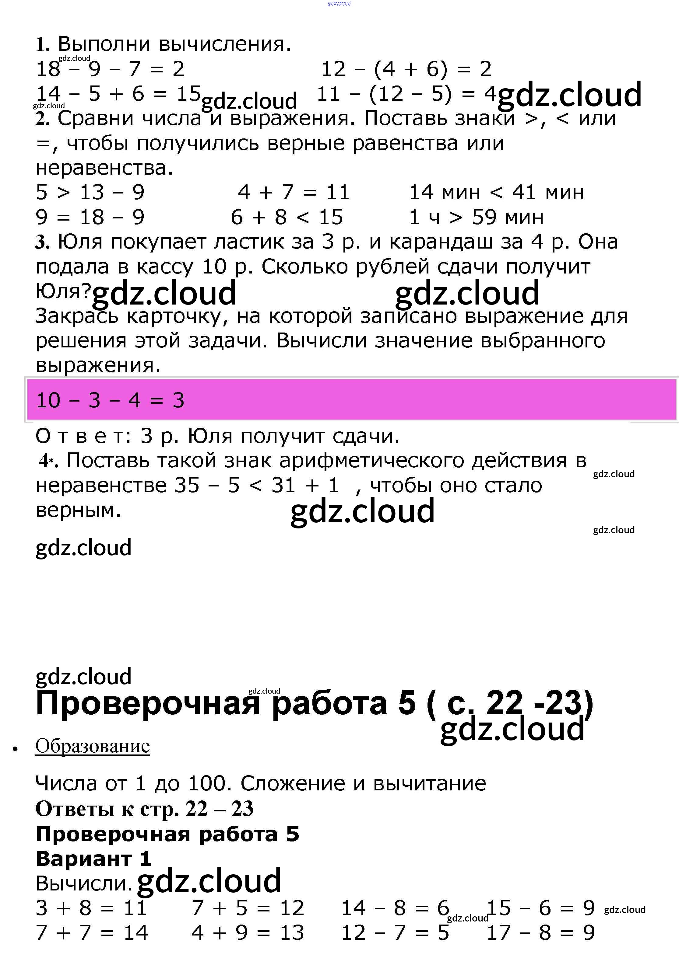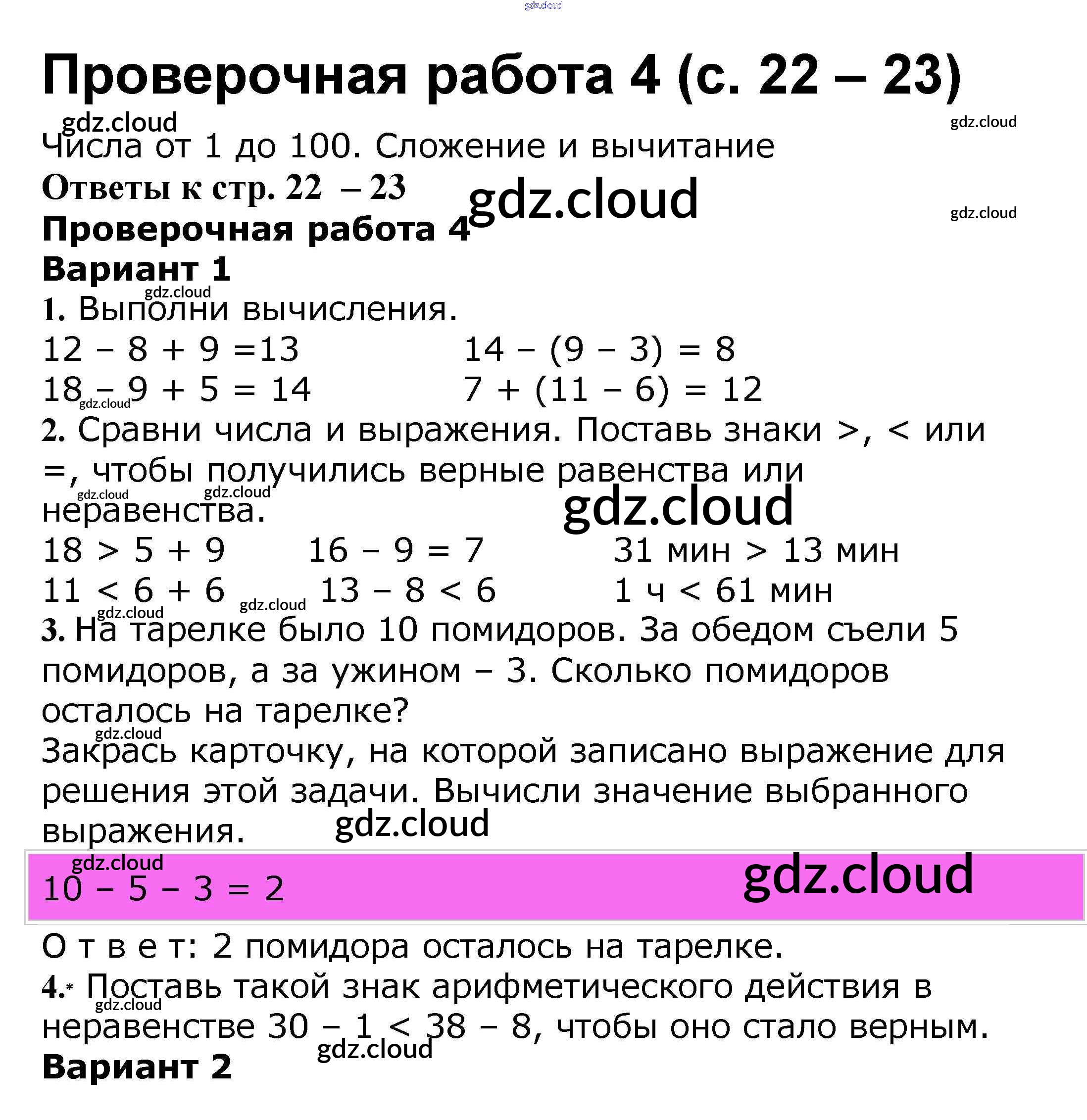 Ответ на задание 22 Проверочные работы Математика за 2 (второй) класс Волкова Школа России 2014