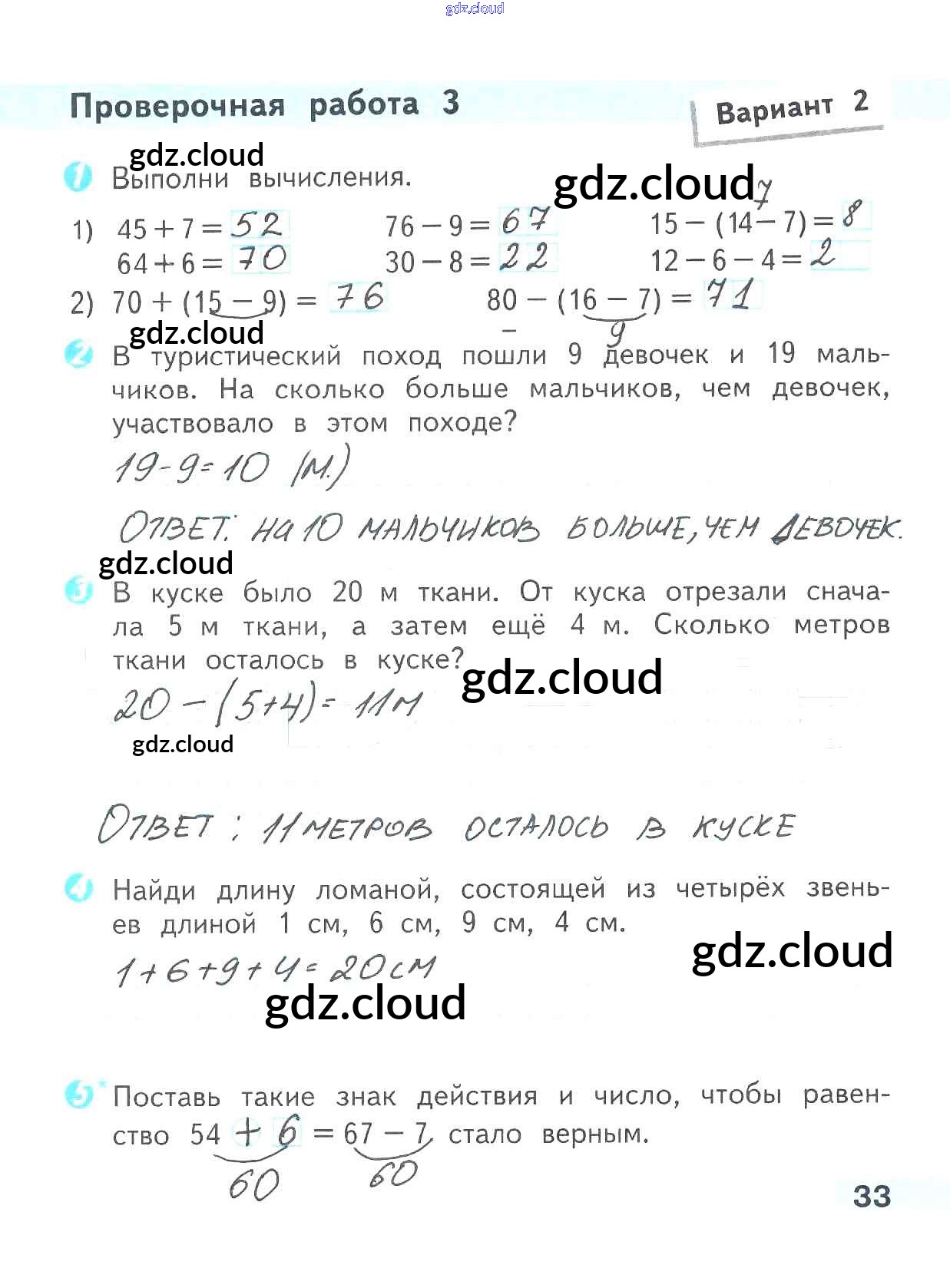 Ответ на задание 33 Проверочные работы Математика за 2 (второй) класс Волкова Школа России 2014