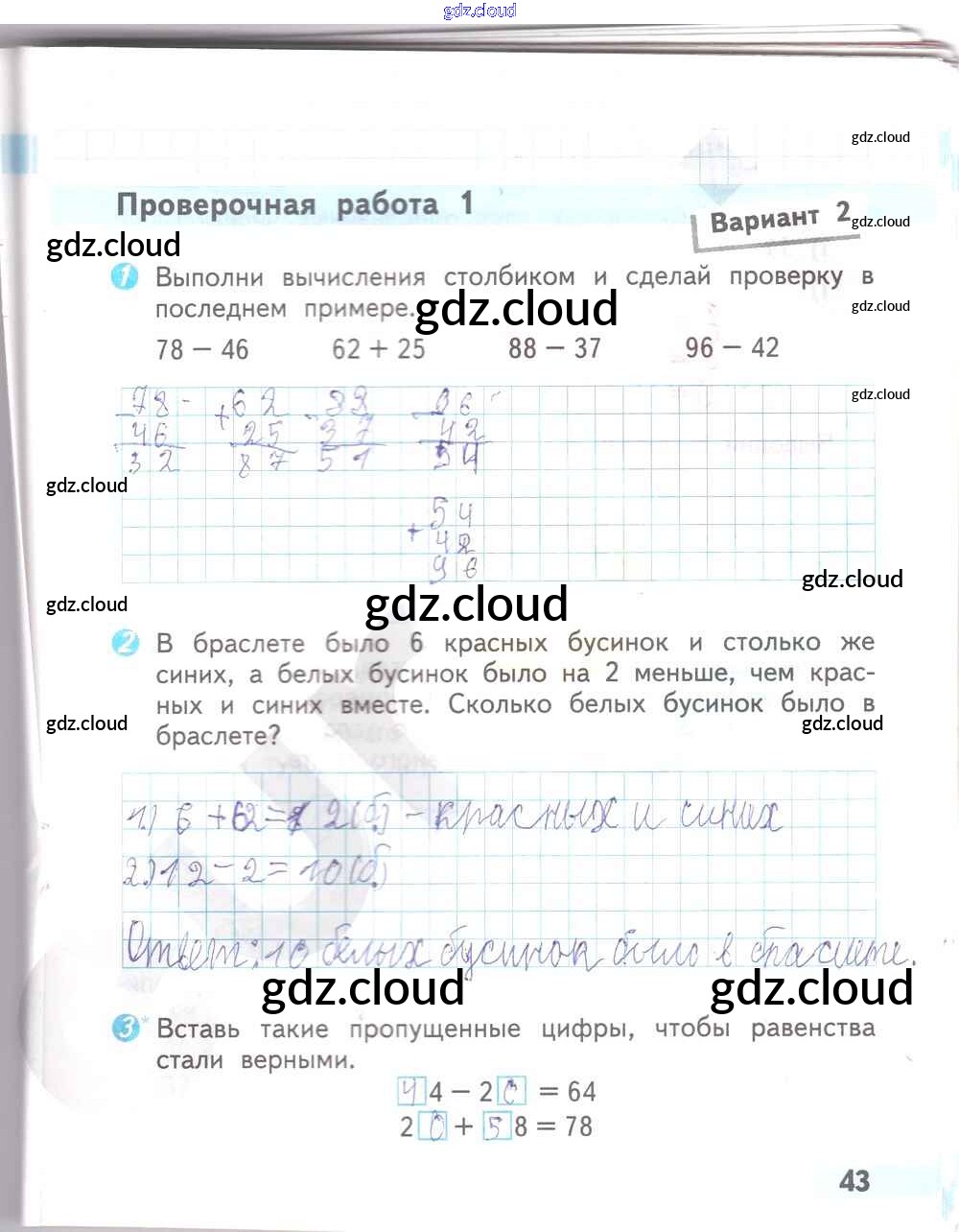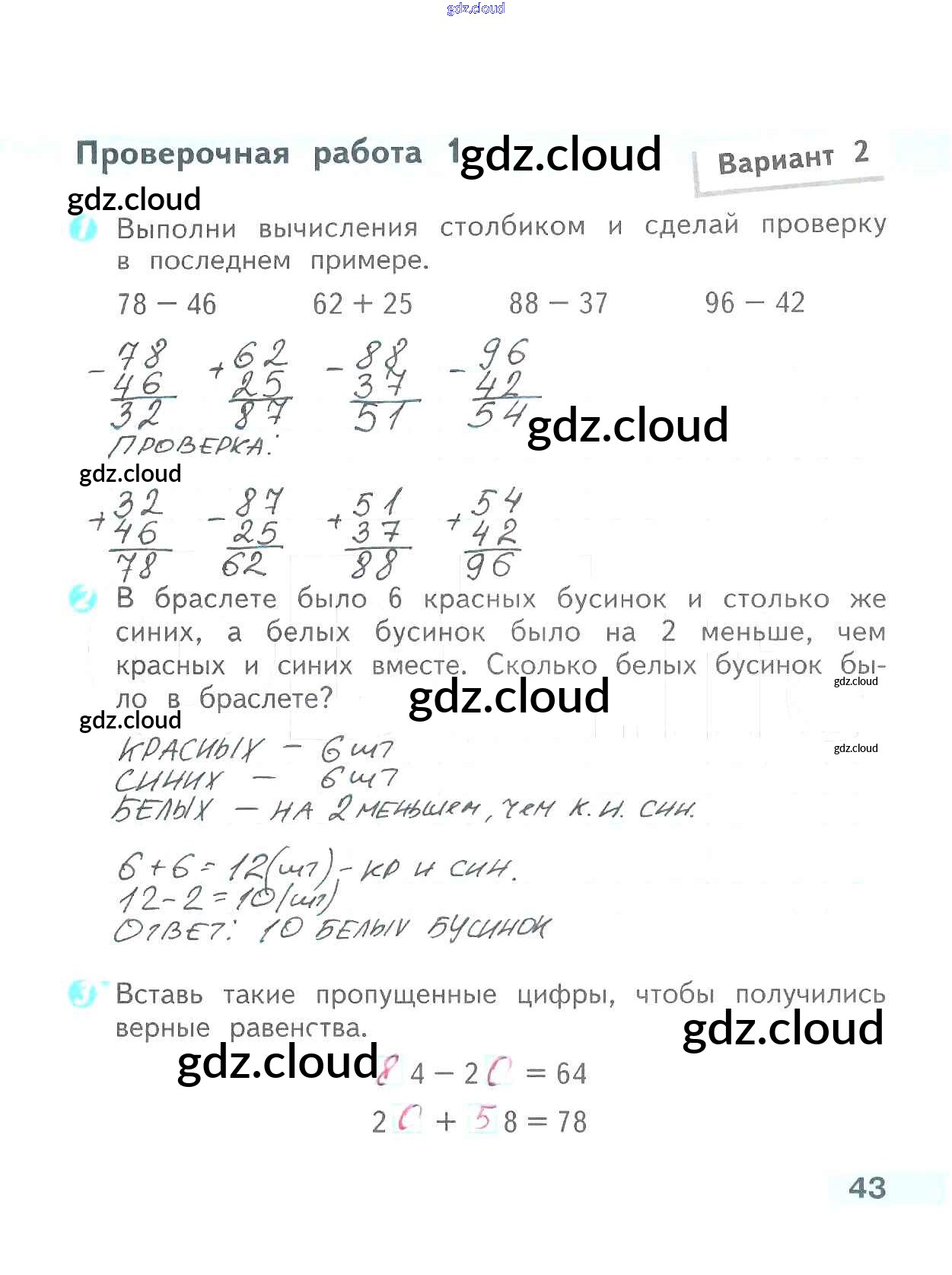 Ответ на задание 43 Проверочные работы Математика за 2 (второй) класс Волкова Школа России 2014