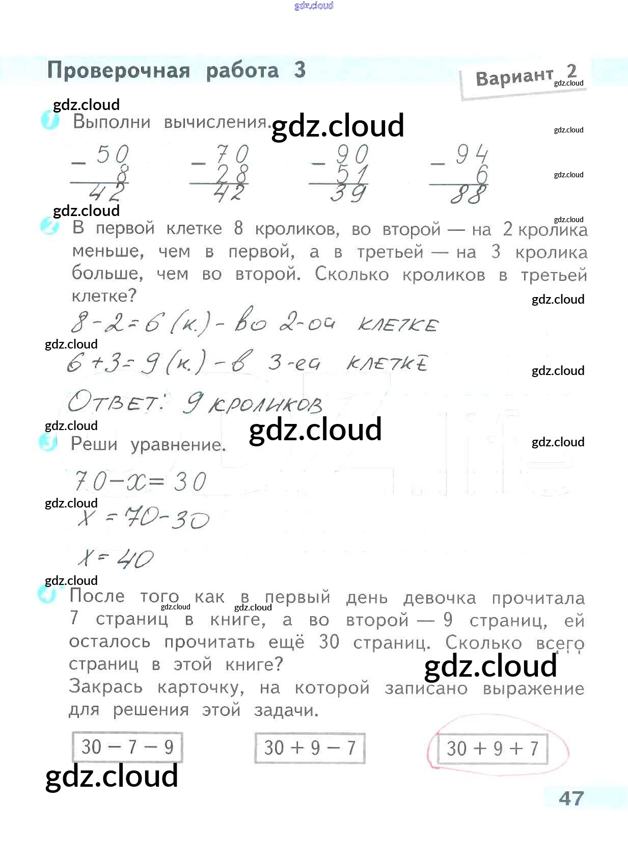 Ответ на задание 47 Проверочные работы Математика за 2 (второй) класс Волкова Школа России 2014