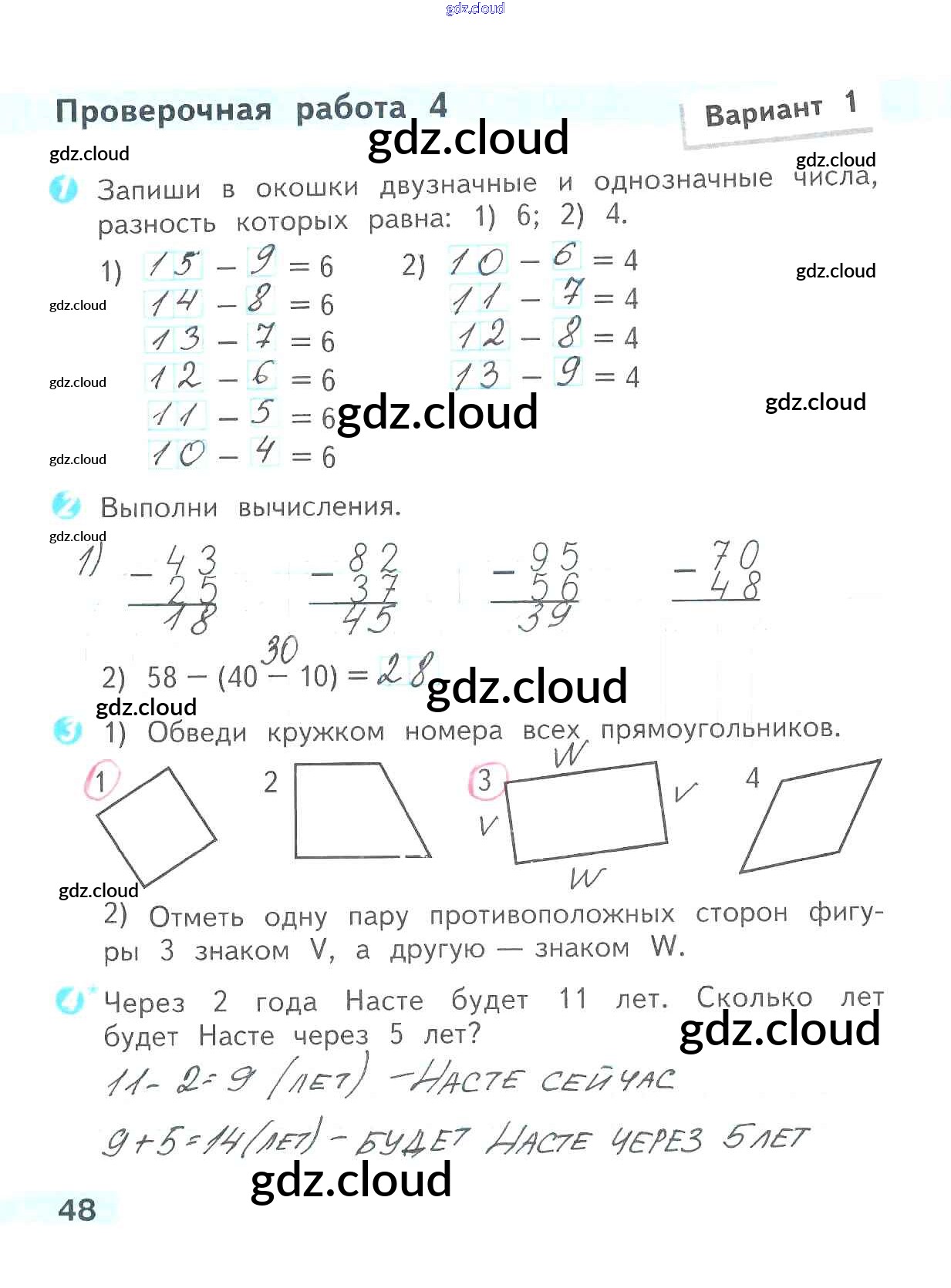Ответ на задание 48 Проверочные работы Математика за 2 (второй) класс Волкова Школа России 2014