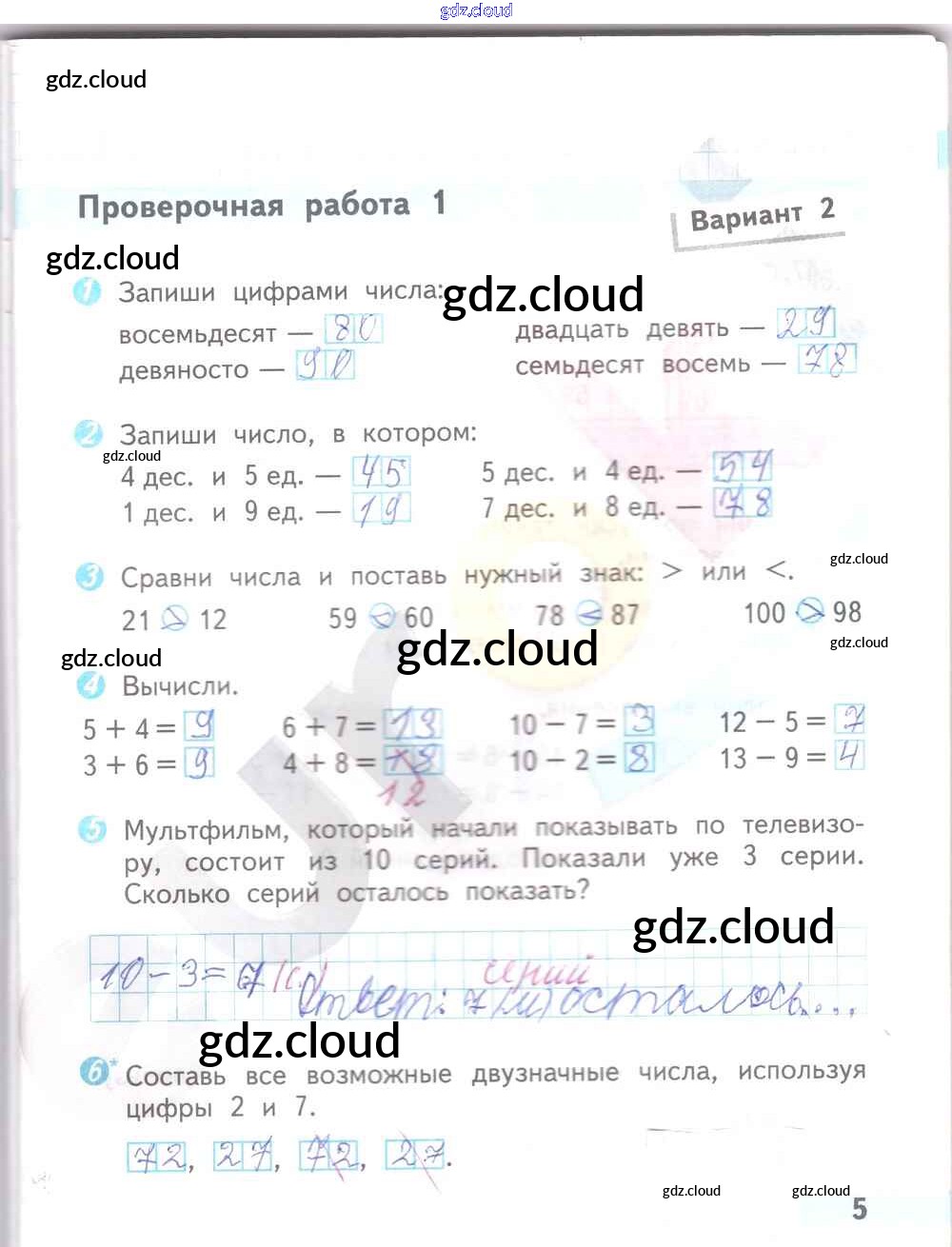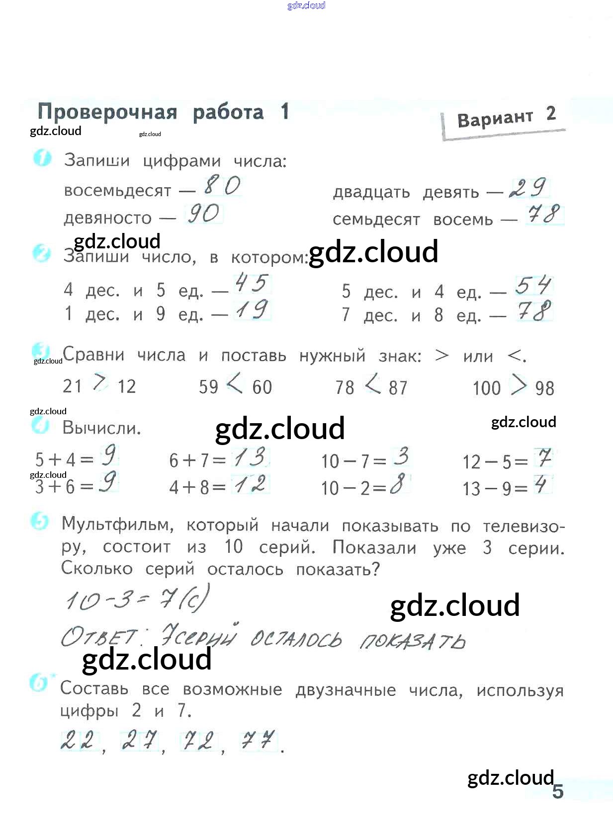 Ответ на задание 5 Проверочные работы Математика за 2 (второй) класс Волкова Школа России 2014