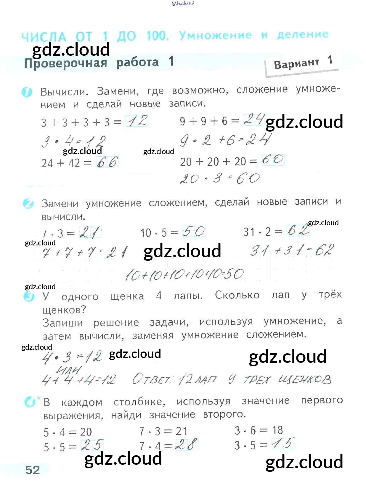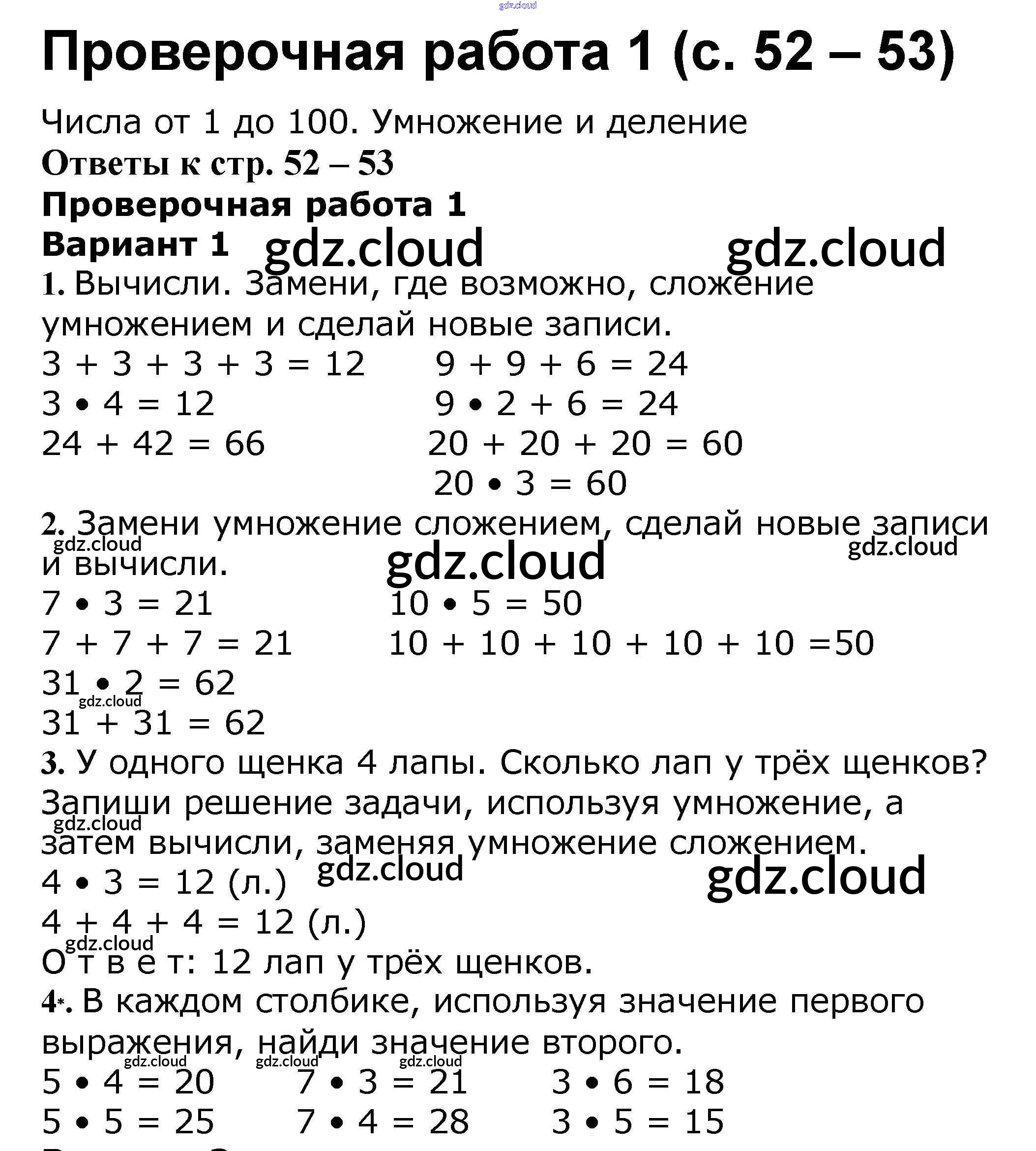 Ответ на задание 52 Проверочные работы Математика за 2 (второй) класс Волкова Школа России 2014