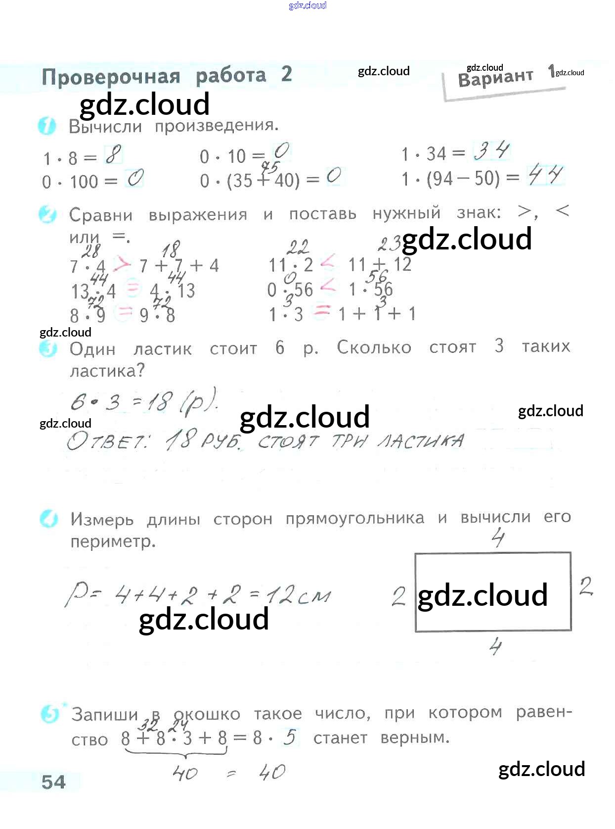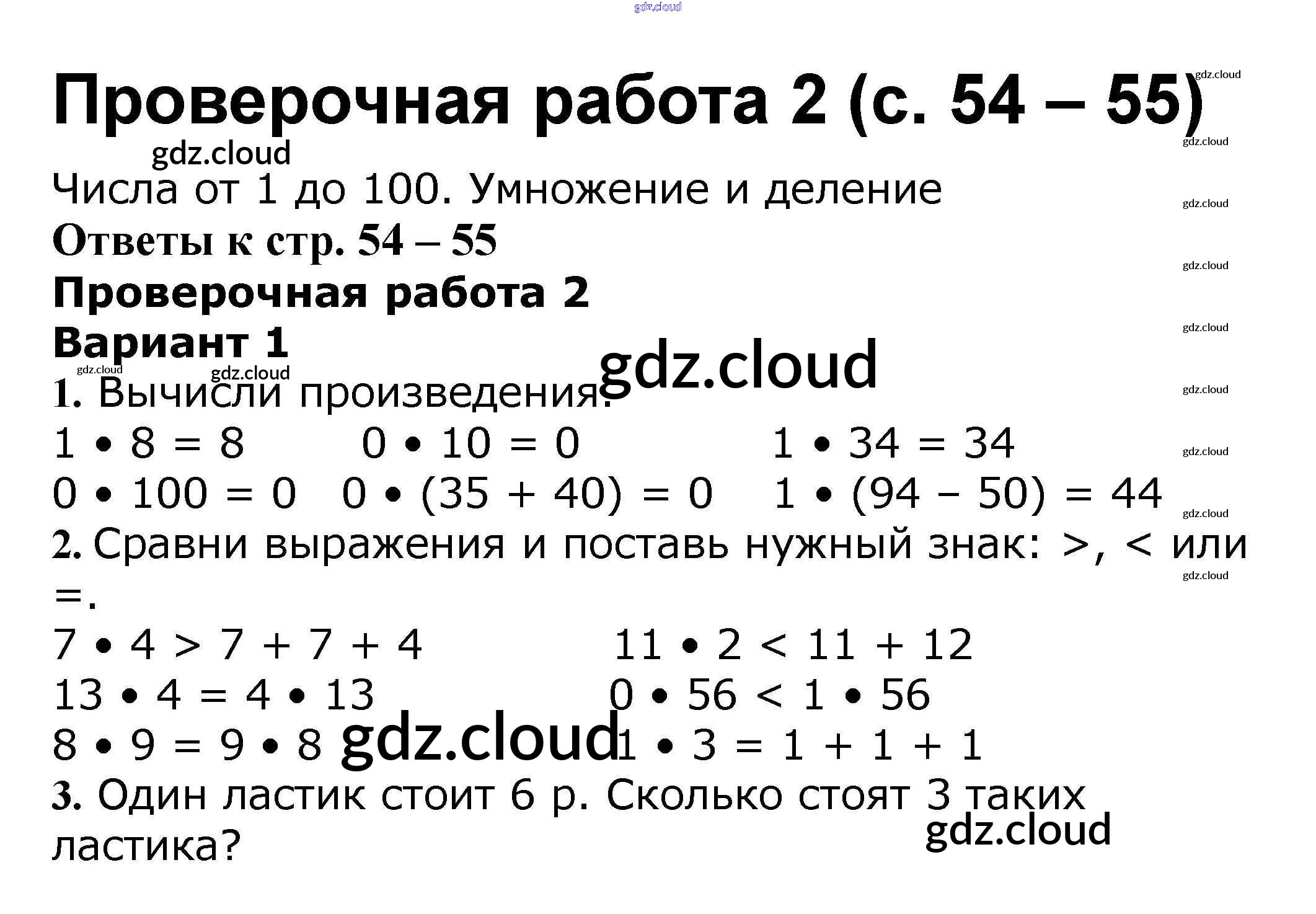 Ответ на задание 54 Проверочные работы Математика за 2 (второй) класс Волкова Школа России 2014