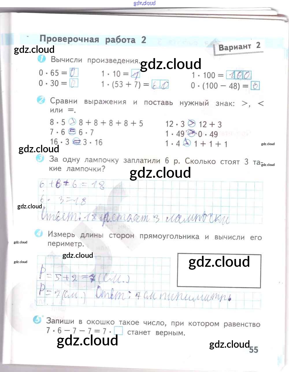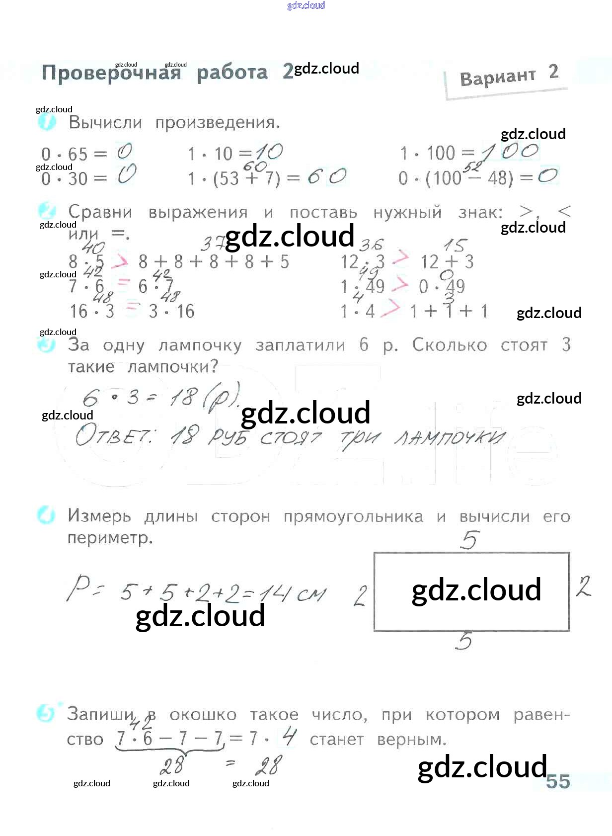 Ответ на задание 55 Проверочные работы Математика за 2 (второй) класс Волкова Школа России 2014