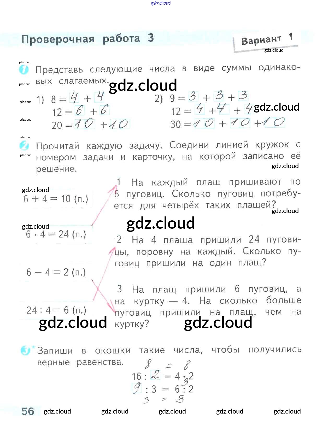 Ответ на задание 56 Проверочные работы Математика за 2 (второй) класс Волкова Школа России 2014