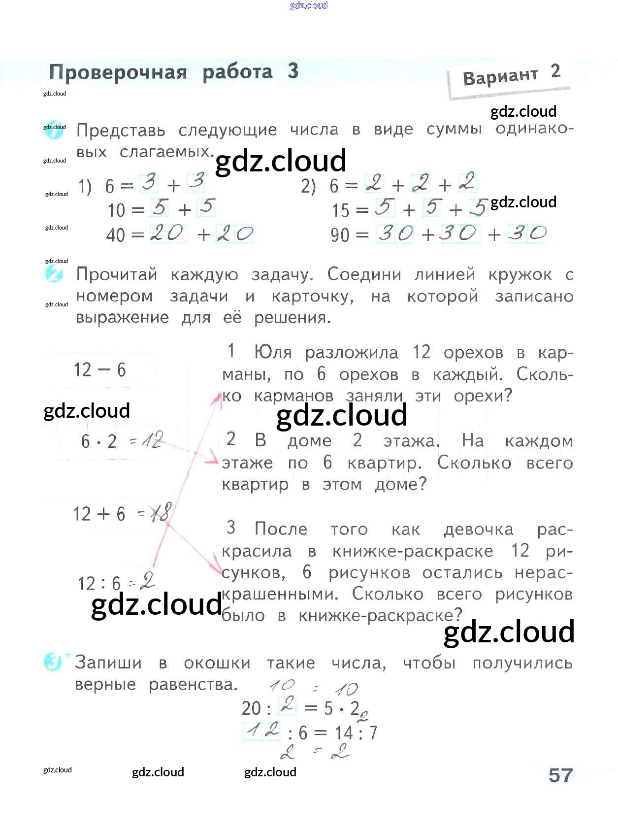 Ответ на задание 57 Проверочные работы Математика за 2 (второй) класс Волкова Школа России 2014