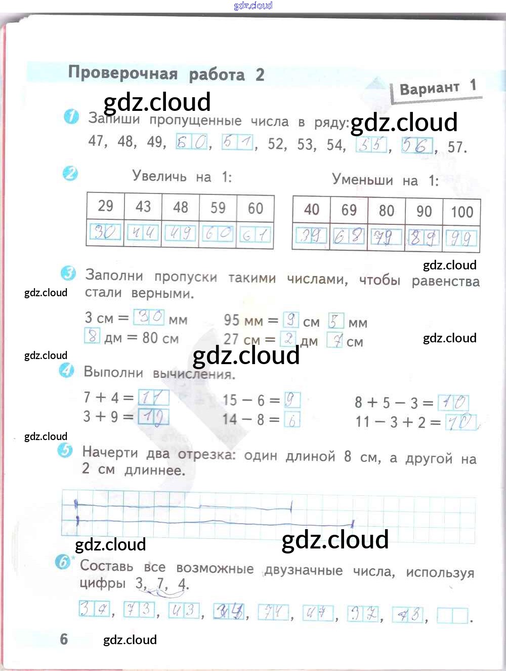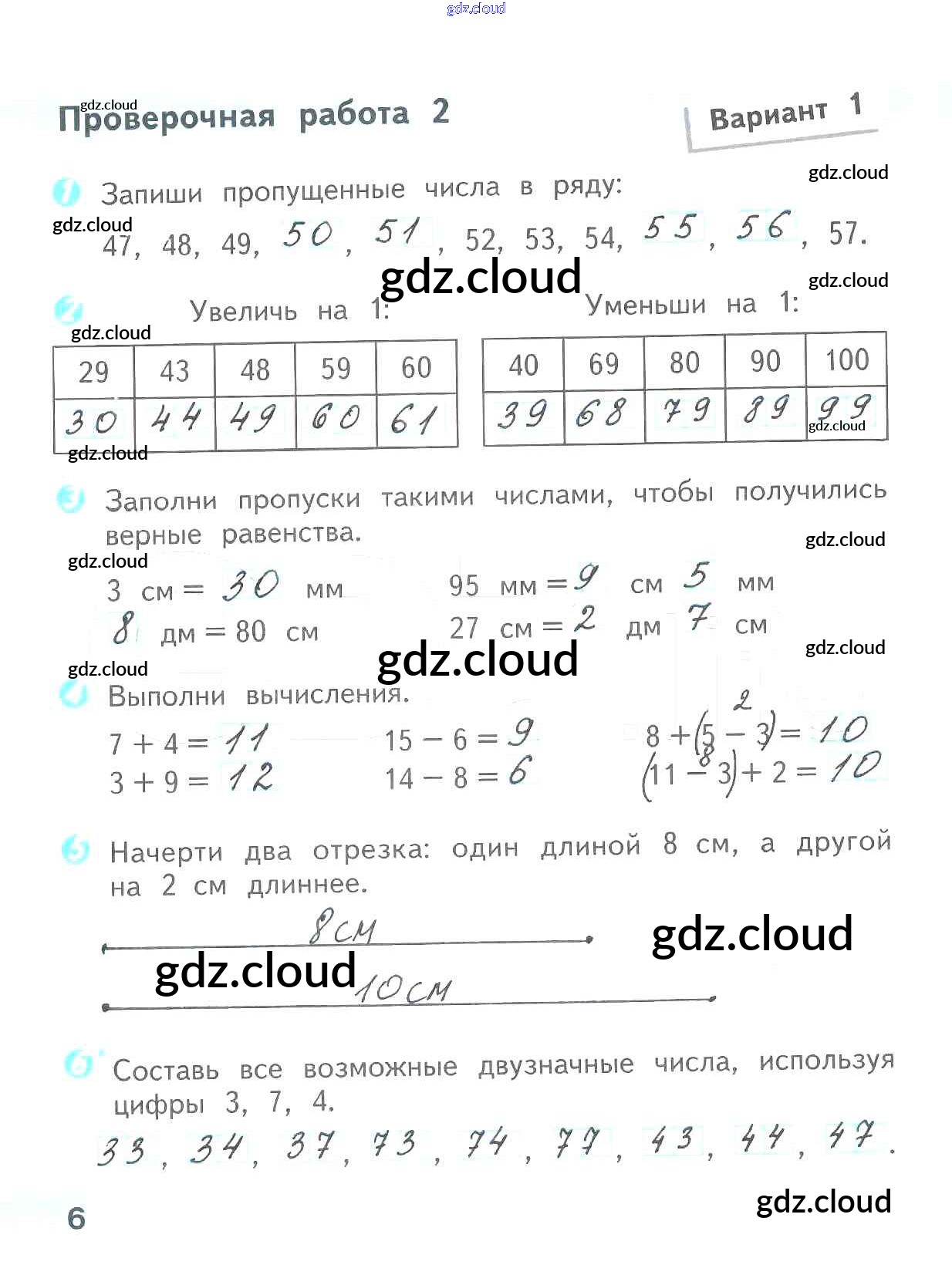 Ответ на задание 6 Проверочные работы Математика за 2 (второй) класс Волкова Школа России 2014