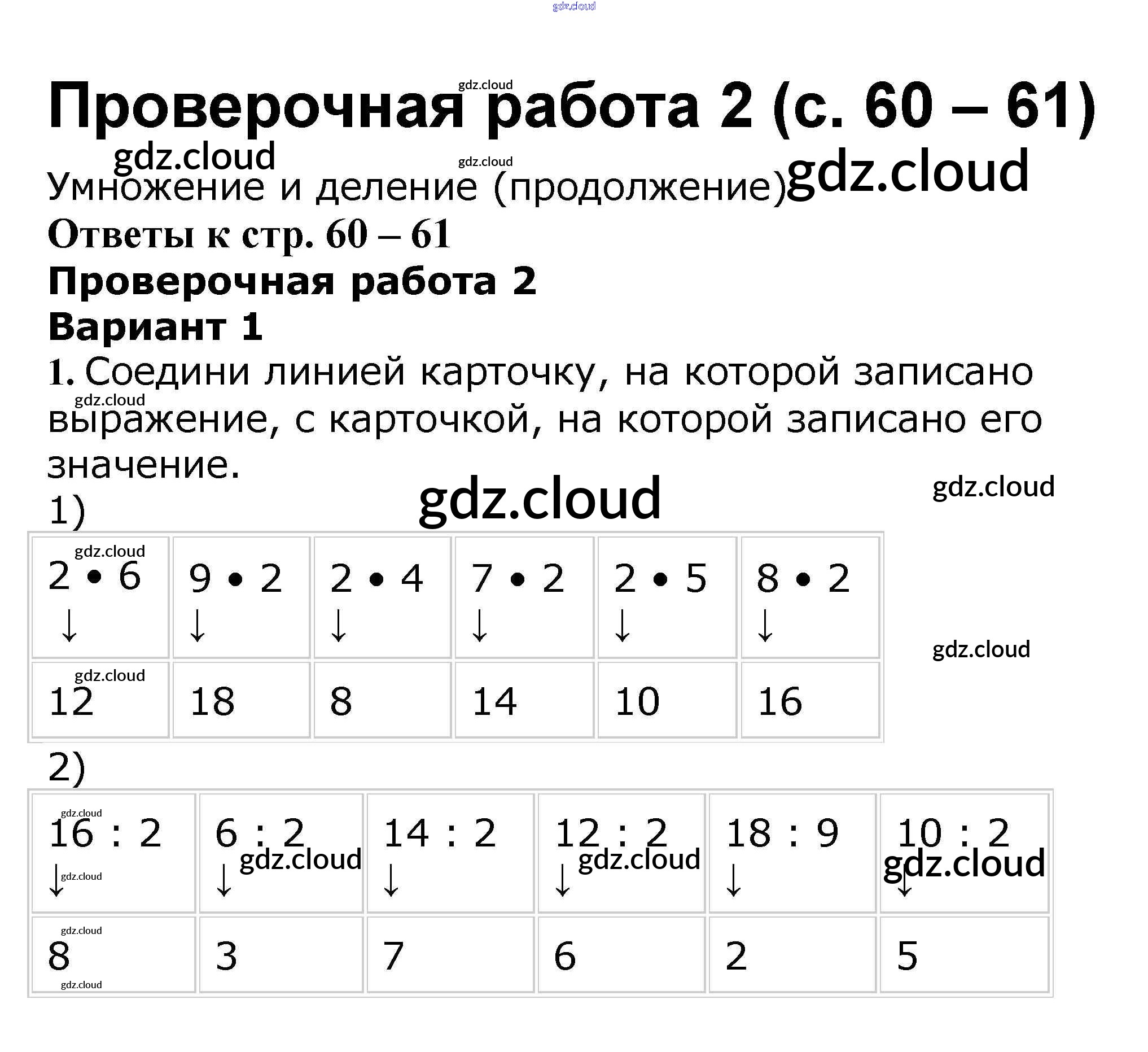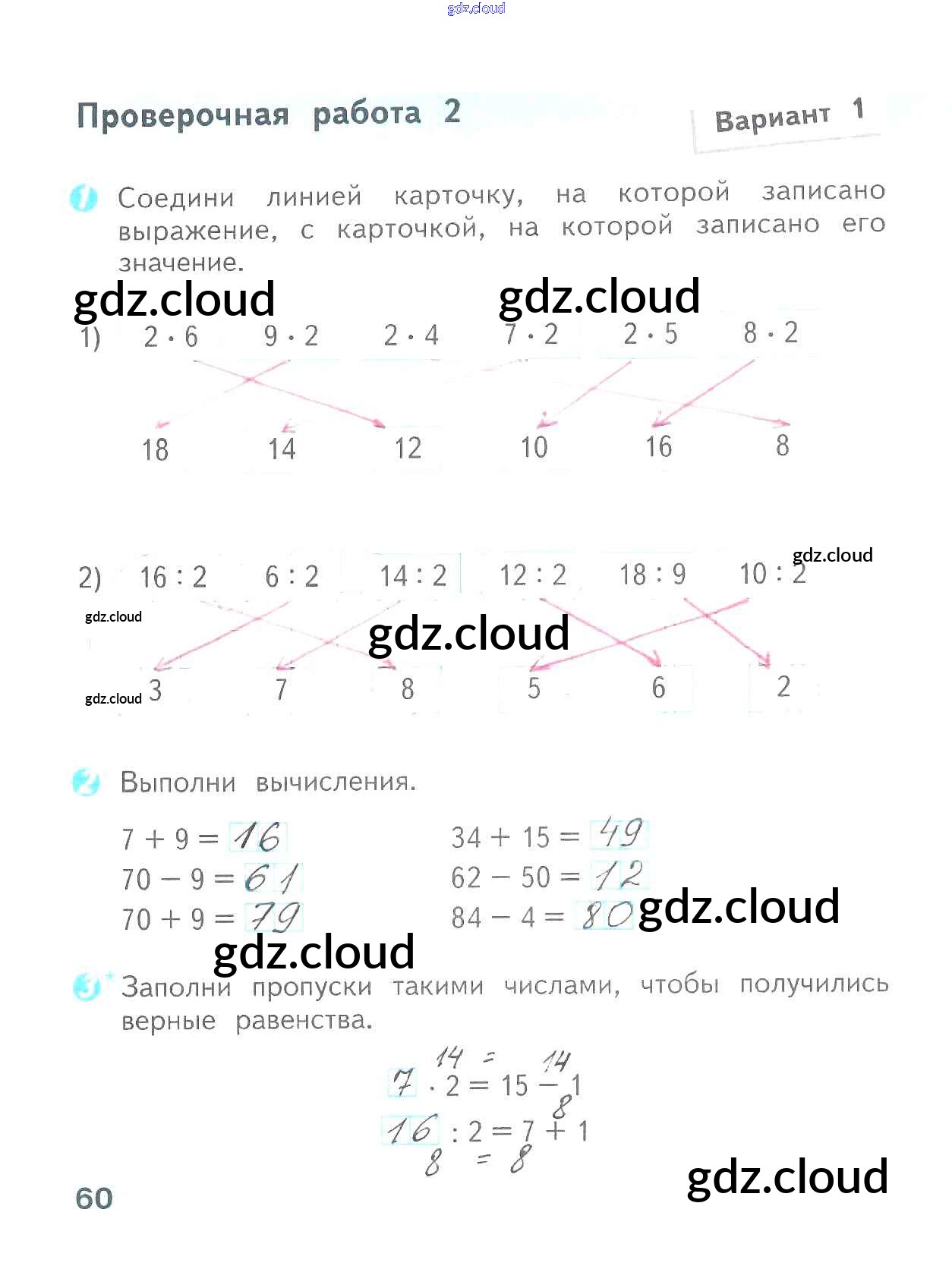 Ответ на задание 60 Проверочные работы Математика за 2 (второй) класс Волкова Школа России 2014