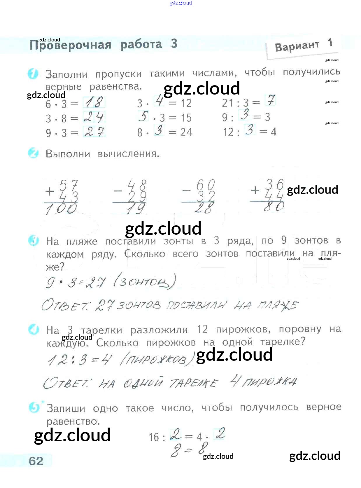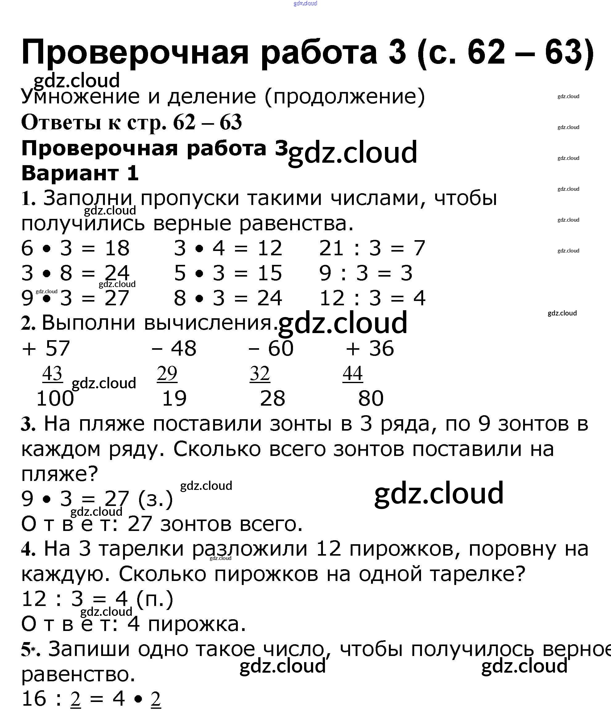 Ответ на задание 62 Проверочные работы Математика за 2 (второй) класс Волкова Школа России 2014