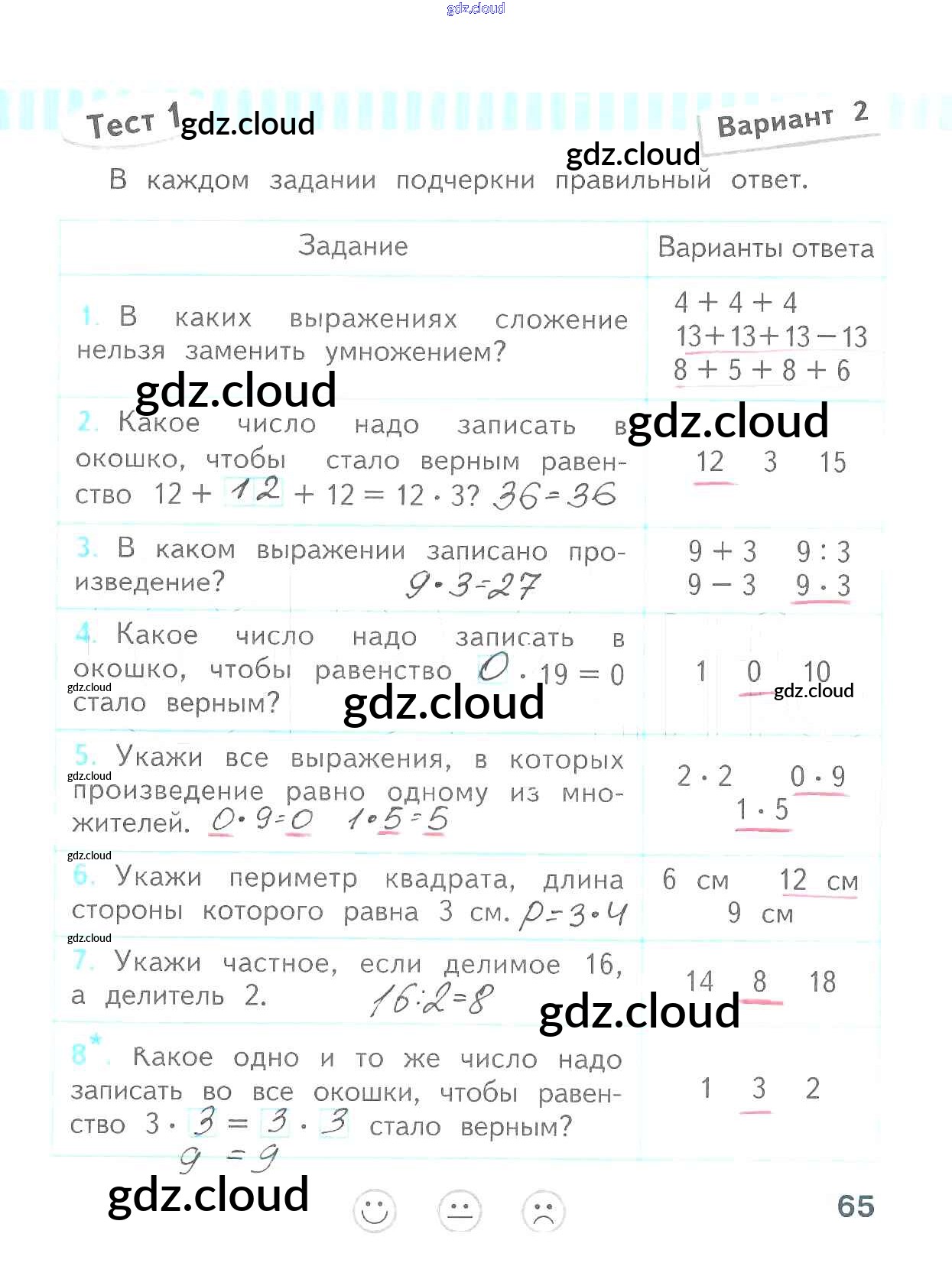 Ответ на задание 65 Проверочные работы Математика за 2 (второй) класс Волкова Школа России 2014