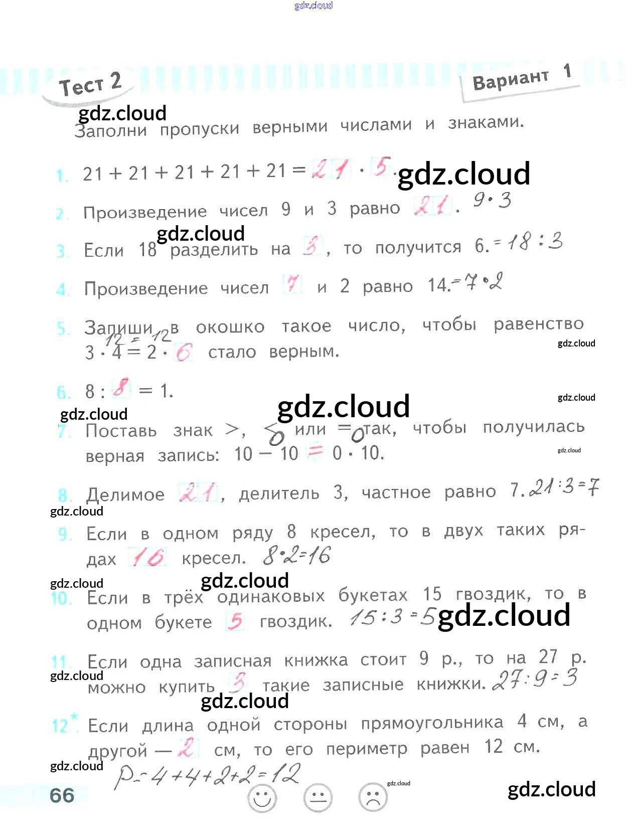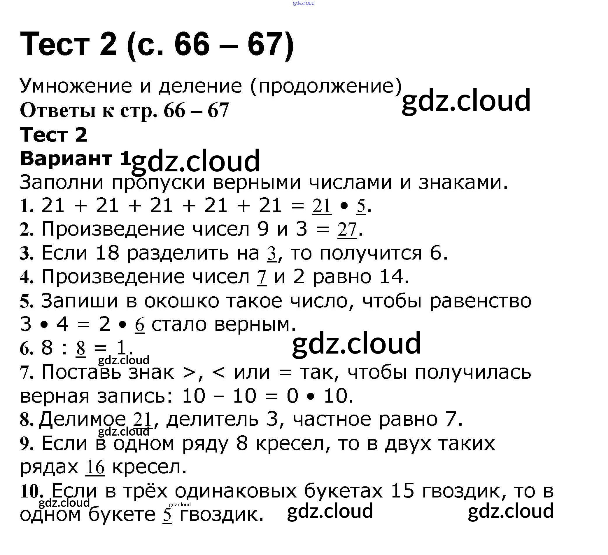 Ответ на задание 66 Проверочные работы Математика за 2 (второй) класс Волкова Школа России 2014