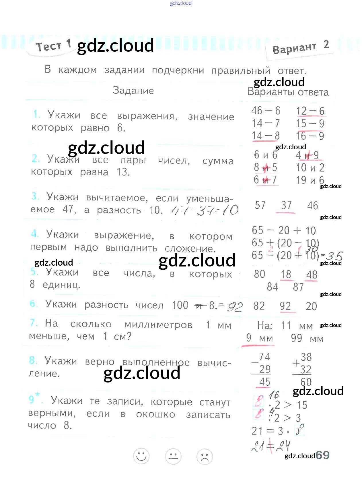 Ответ на задание 69 Проверочные работы Математика за 2 (второй) класс Волкова Школа России 2014
