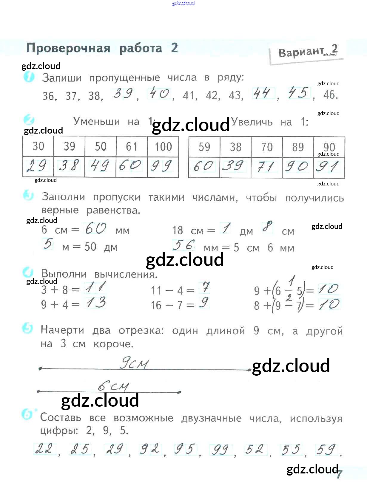 Ответ на задание 7 Проверочные работы Математика за 2 (второй) класс Волкова Школа России 2014