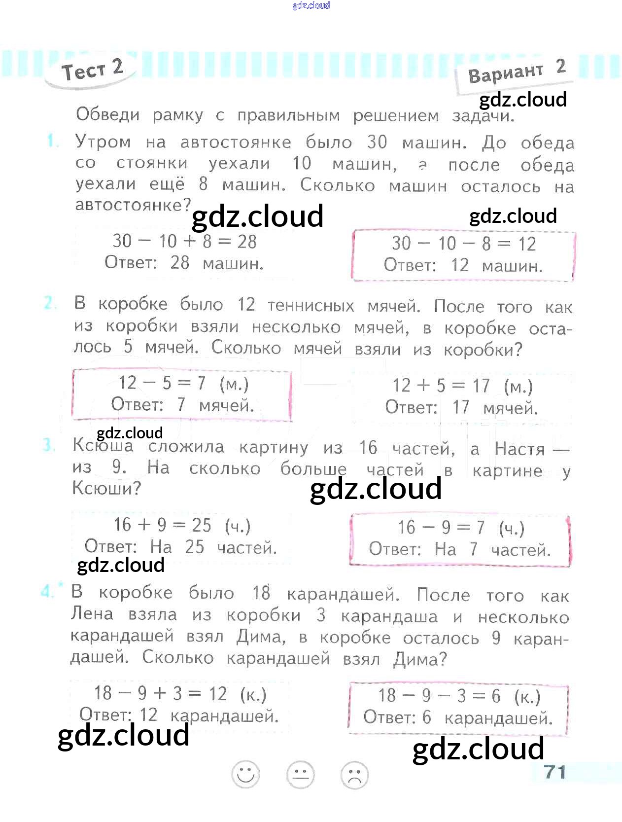 Ответ на задание 71 Проверочные работы Математика за 2 (второй) класс Волкова Школа России 2014