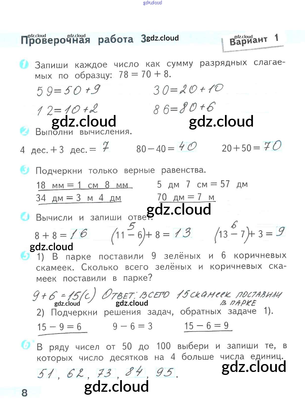 Ответ на задание 8 Проверочные работы Математика за 2 (второй) класс Волкова Школа России 2014