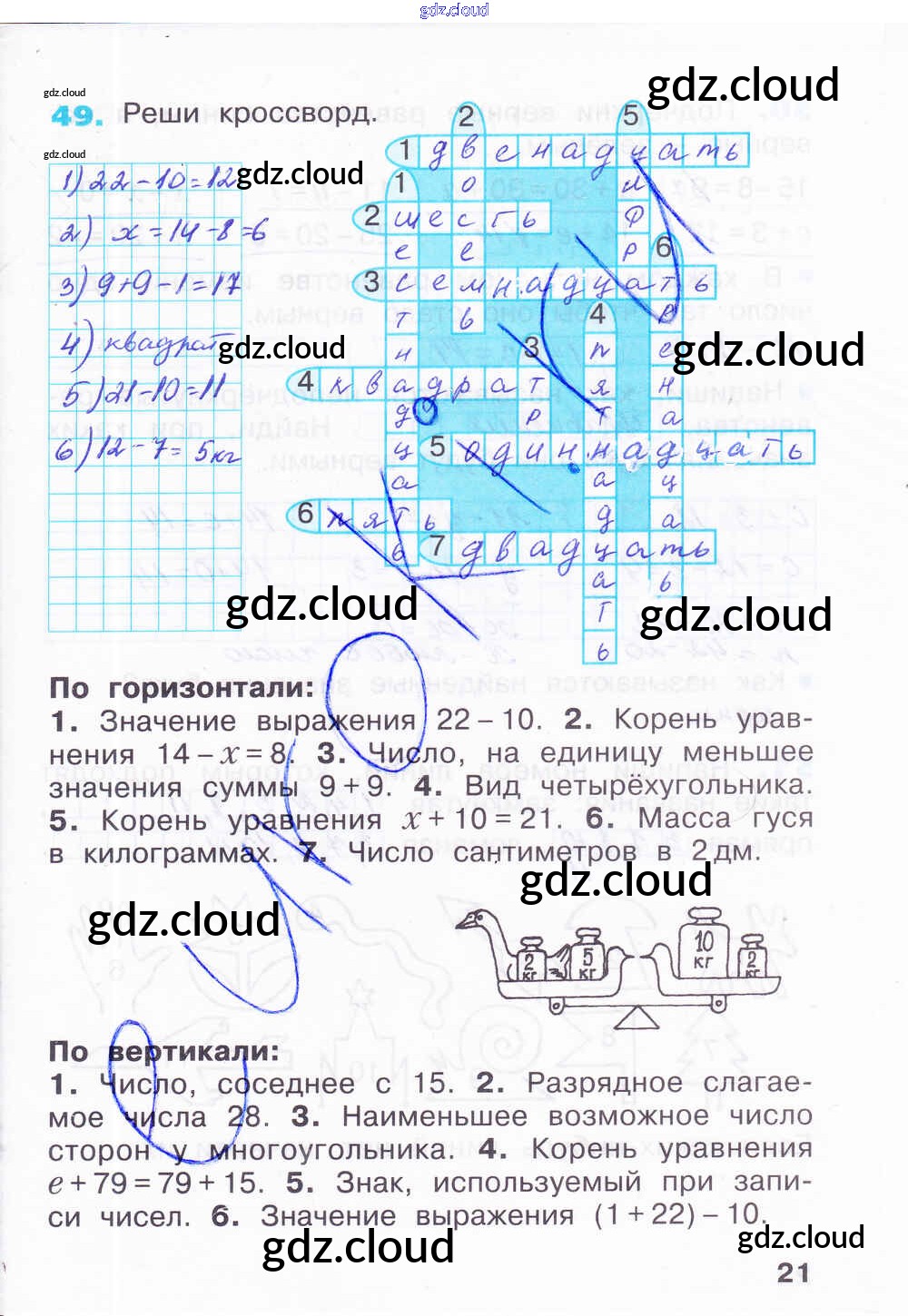 Ответ на задание 21 Рабочая тетрадь Математика за 2 (второй) класс Бененсон, Итина 2020 Часть 1, 2, 3, 4