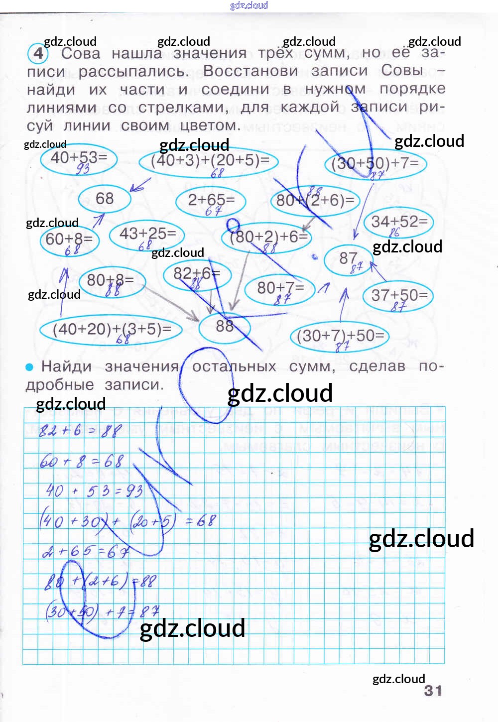 Ответ на задание 31 Рабочая тетрадь Математика за 2 (второй) класс Бененсон, Итина 2020 Часть 1, 2, 3, 4