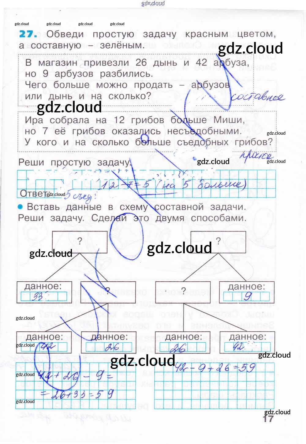 Ответ на задание 17 Рабочая тетрадь Математика за 2 (второй) класс Бененсон, Итина 2020 Часть 1, 2, 3, 4