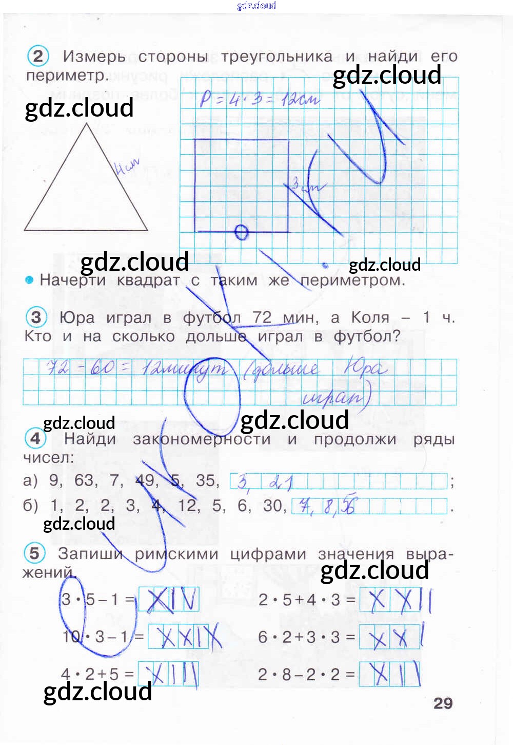 Ответ на задание 29 Рабочая тетрадь Математика за 2 (второй) класс Бененсон, Итина 2020 Часть 1, 2, 3, 4