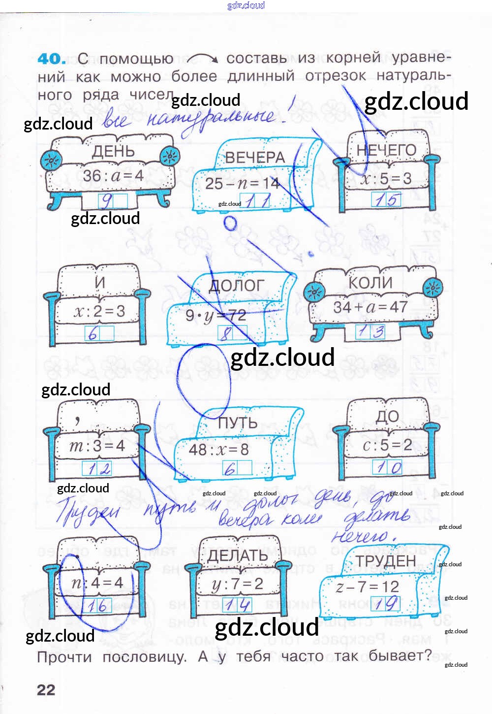 Ответ на задание 22 Рабочая тетрадь Математика за 2 (второй) класс Бененсон, Итина 2020 Часть 1, 2, 3, 4