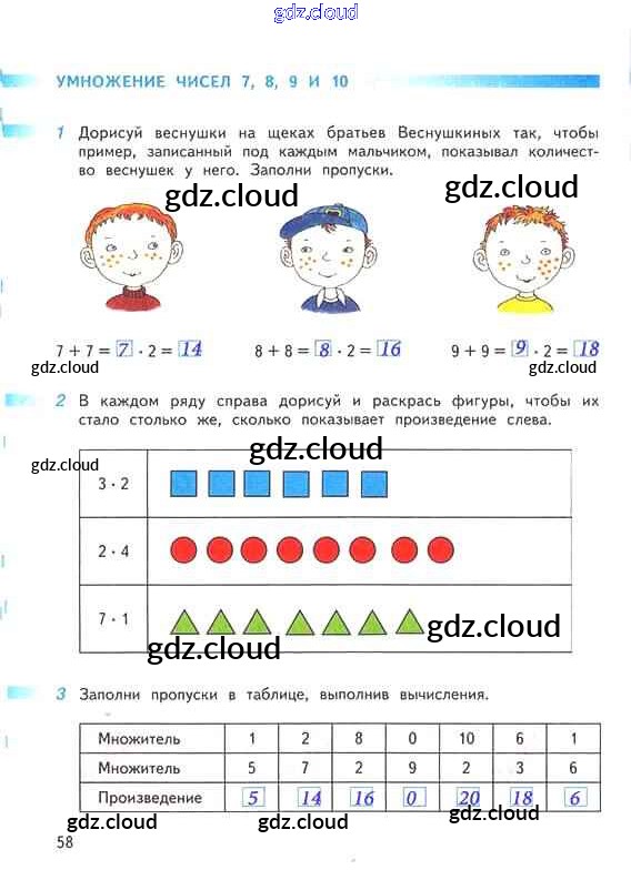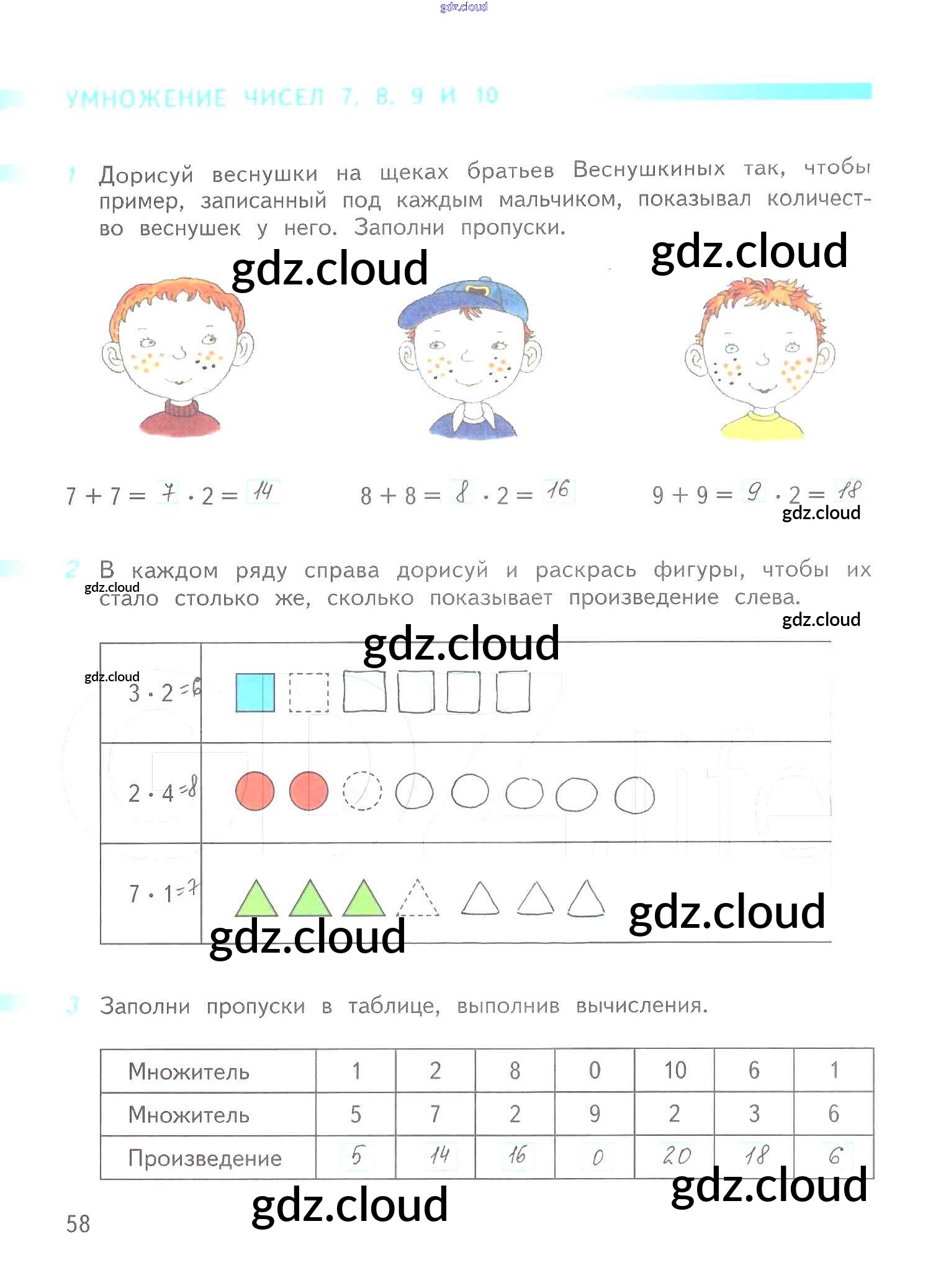 Ответ на задание 58 Рабочая тетрадь Математика за 2 (второй) класс Дорофеев, Миракова, Бука Перспектива 2015 Часть 1, 2