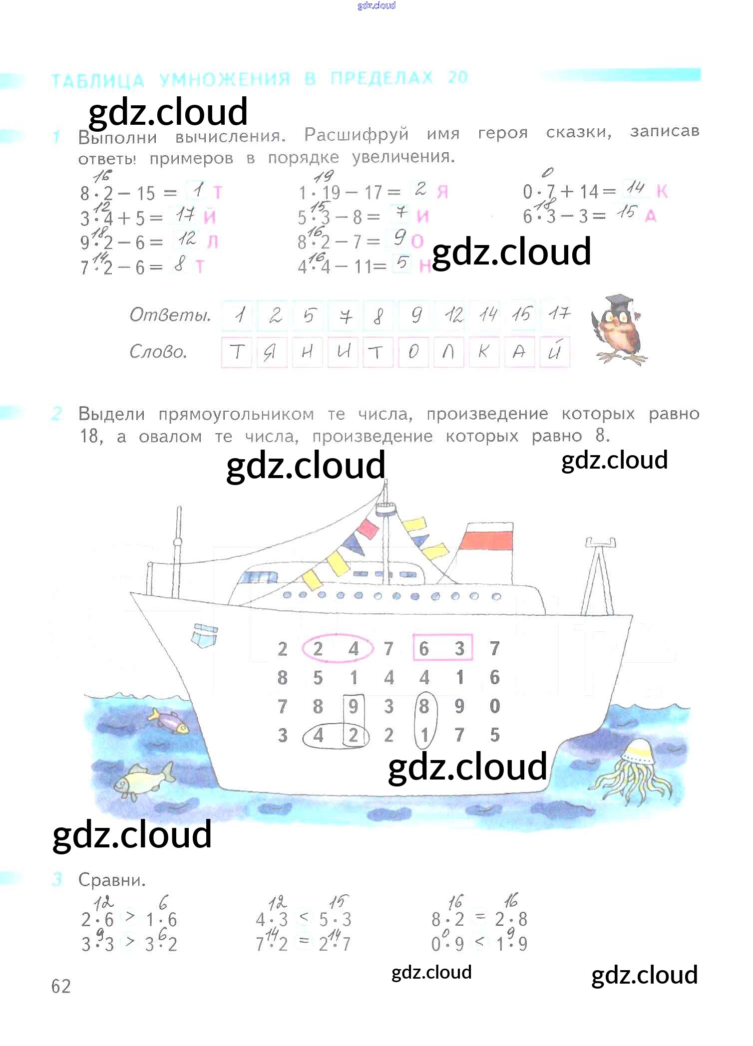 Ответ на задание 62 Рабочая тетрадь Математика за 2 (второй) класс Дорофеев, Миракова, Бука Перспектива 2015 Часть 1, 2
