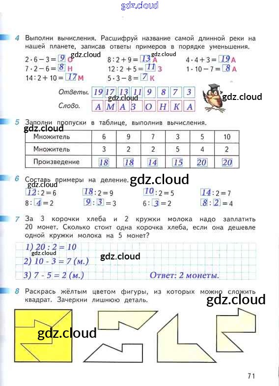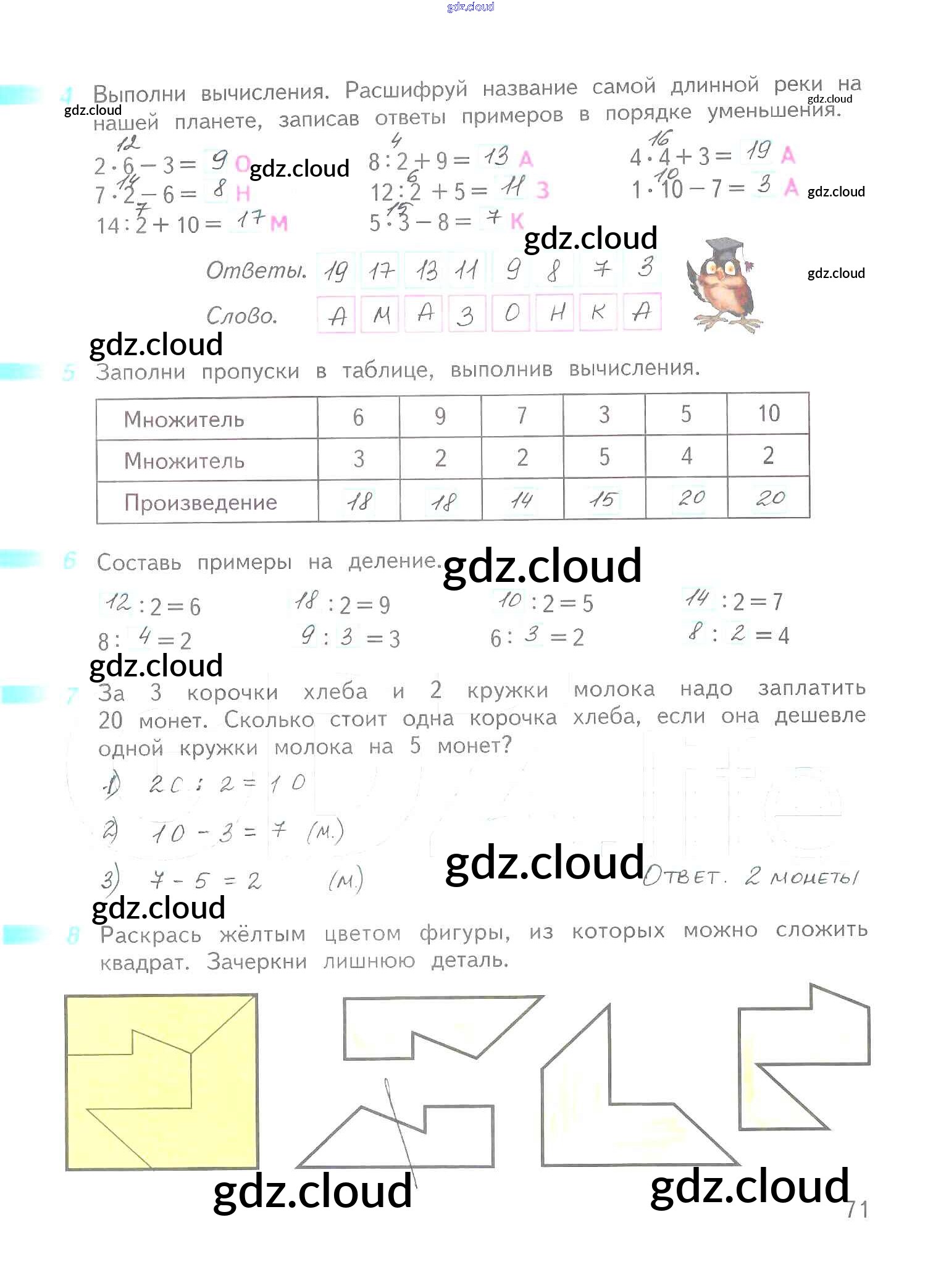 Ответ на задание 71 Рабочая тетрадь Математика за 2 (второй) класс Дорофеев, Миракова, Бука Перспектива 2015 Часть 1, 2