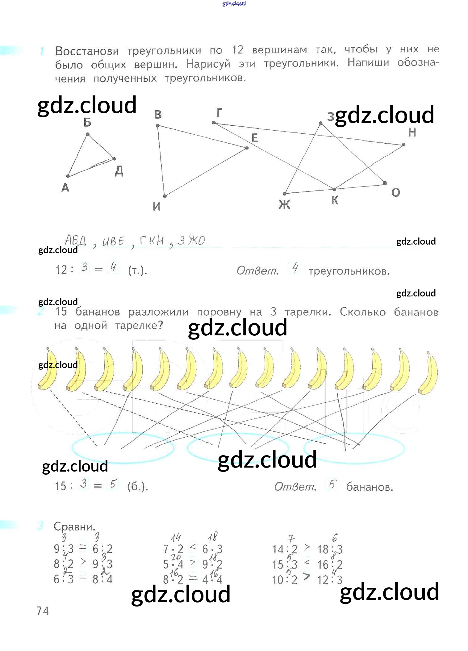 Ответ на задание 74 Рабочая тетрадь Математика за 2 (второй) класс Дорофеев, Миракова, Бука Перспектива 2015 Часть 1, 2